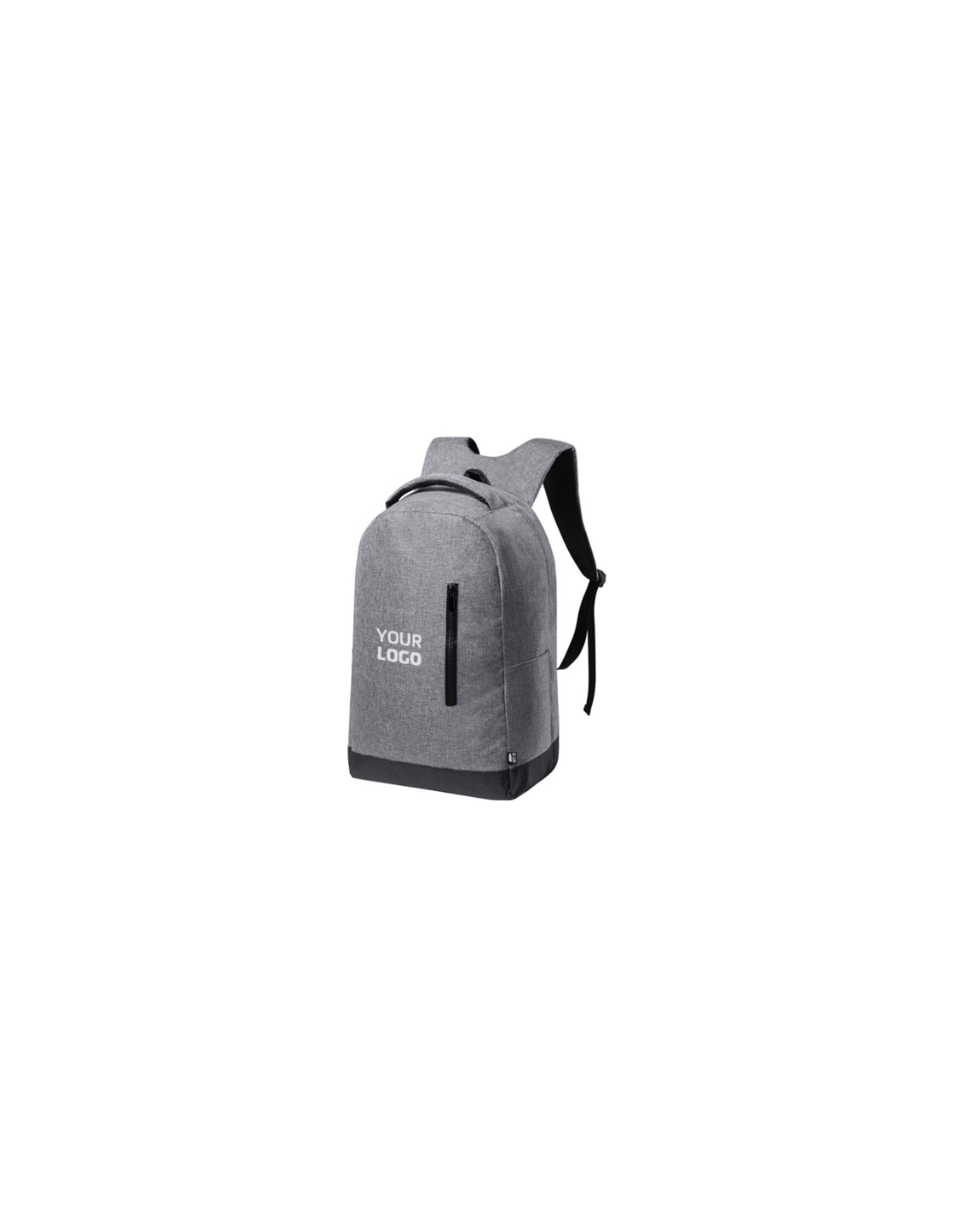 Mochila de negocios antirrobo de línea nature y en resistente 600D RPET efecto melange, elaborado a partir de plástico reciclado para así fomentar la reutilización de residuos plásticos y contribuir a la sostenibilidad del planeta.Detalles en negro y base reforzada. Incluye bolsillo antirrobo para guardar objetos de valor. Bolsillo exterior de cremallera, con dos compartimentos interiores acolchados para ordenador portátil de hasta 15 pulgadas y tablet de hasta 12 pulgadas. Cintas de hombros y espalda con acolchado ergonómico y distintivo RPET en etiqueta exterior.