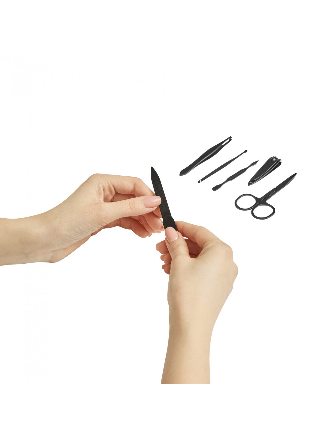 Set de manicura ELAINE PRO RPET de 6 piezas, presentado en elegante estuche de fieltro RPET con cierre a presión y caja individual. Este completo set incluye: