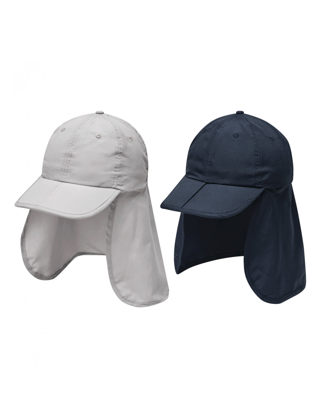 Gorra de legionario 6 paneles FLEXVEIL: panel frontal reforzado, 6 orificios de ventilación bordados, botón en la parte superior, elástico para un ajuste perfecto a cualquier tamaño de cabeza, protección para el cuello – ideal para actividades al aire libre y protección solar