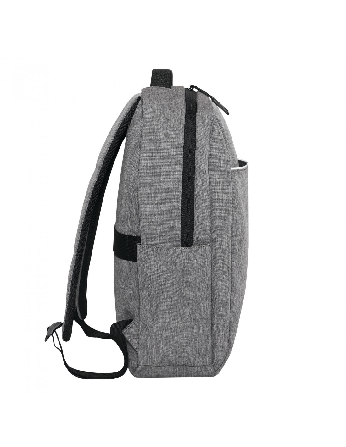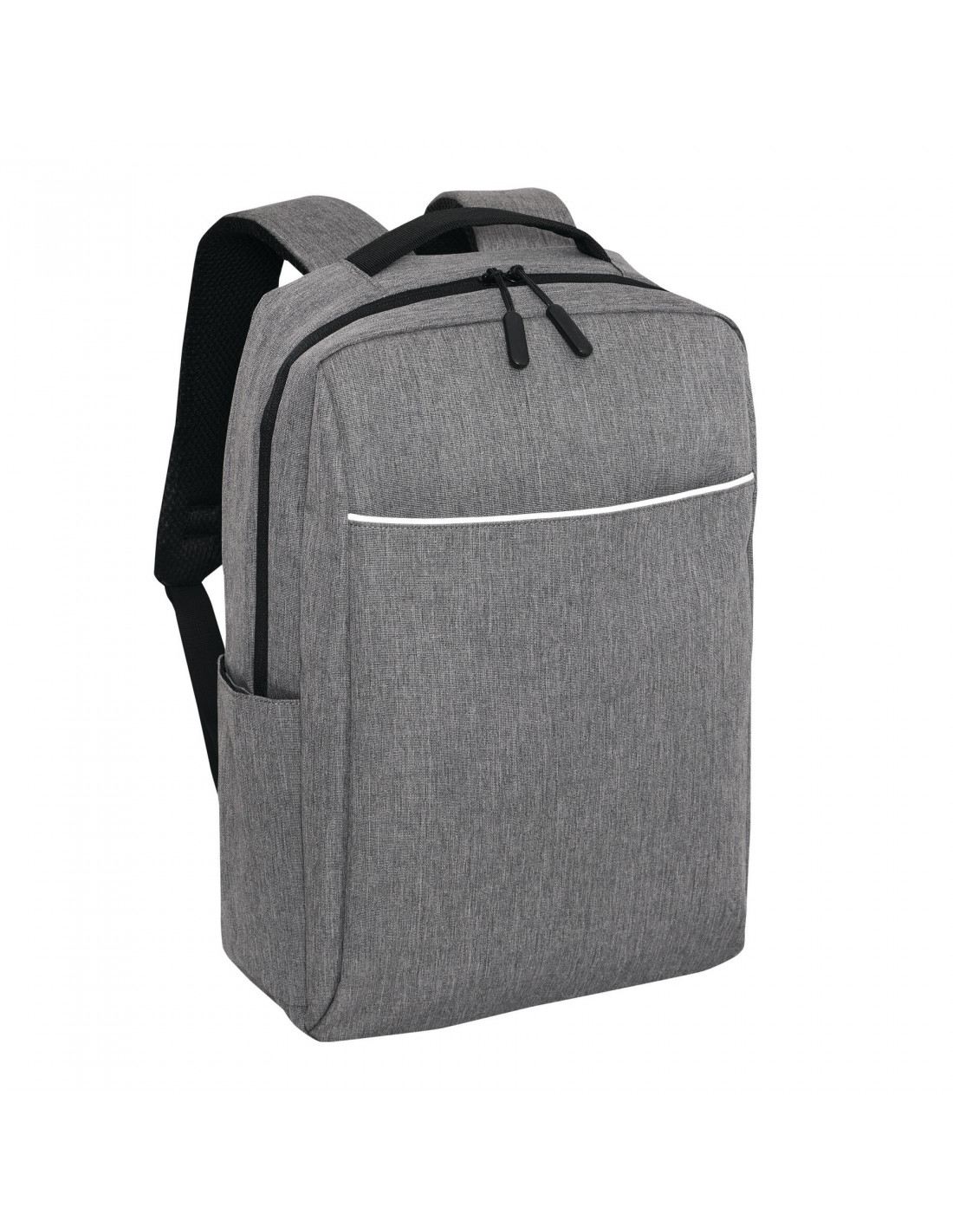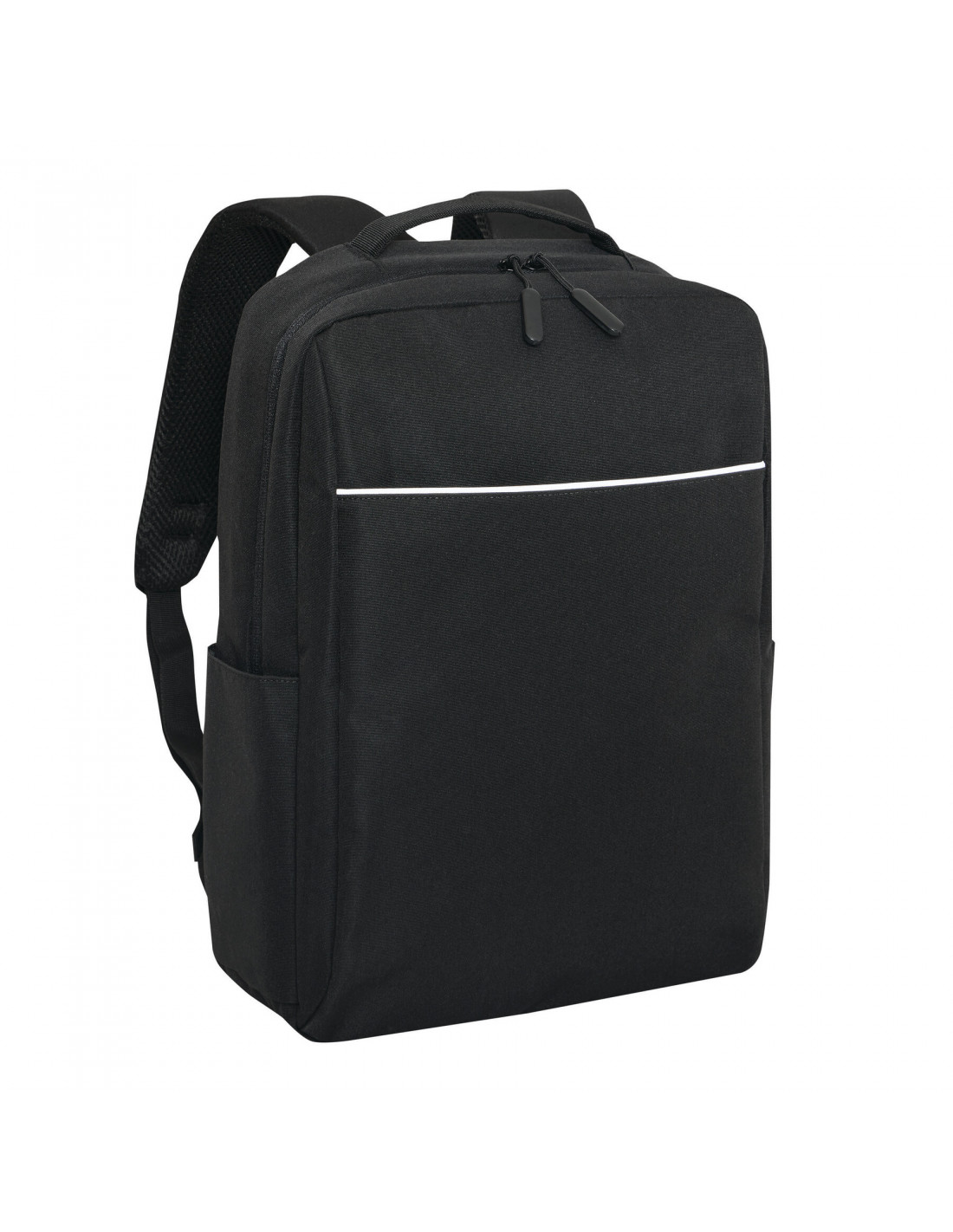 Mochila GHENT: fabricada con poliéster reciclado (rPET), 1 compartimento frontal con cremallera y tira reflectante, compartimento principal con cremallera y funda interior acolchada para portátil o tablet, organizador con 4 bolsillos abiertos, 2 bolsillos laterales, asa de transporte acolchada, correas de hombro acolchadas y ajustables, correa trasera para función de reportero.