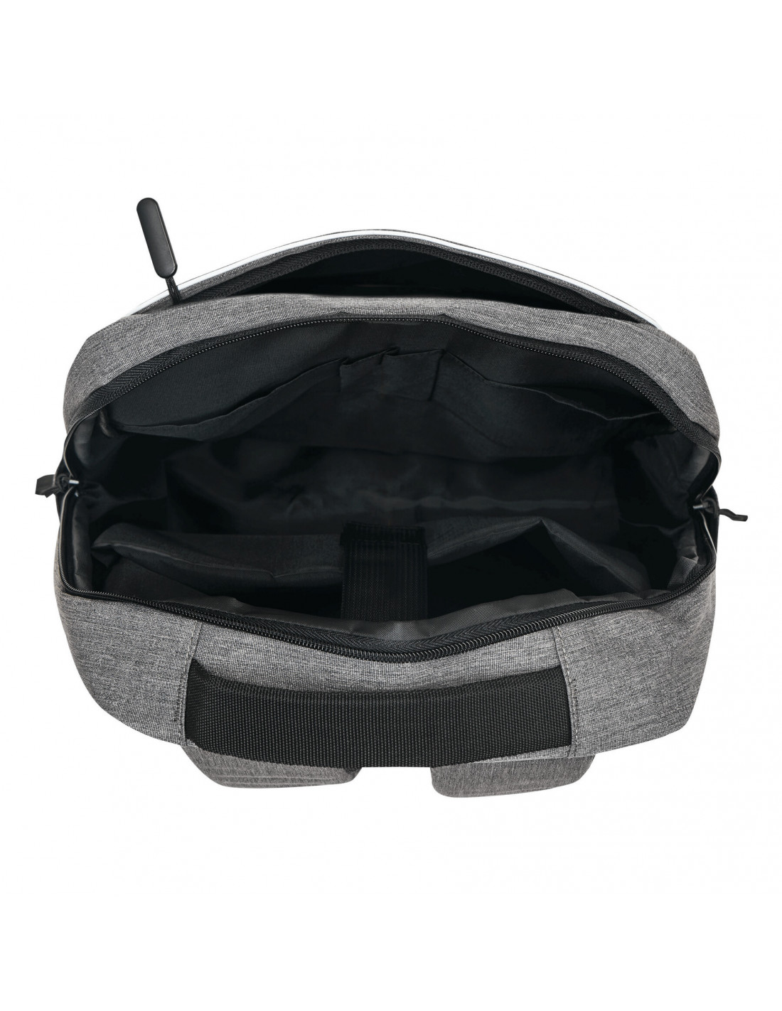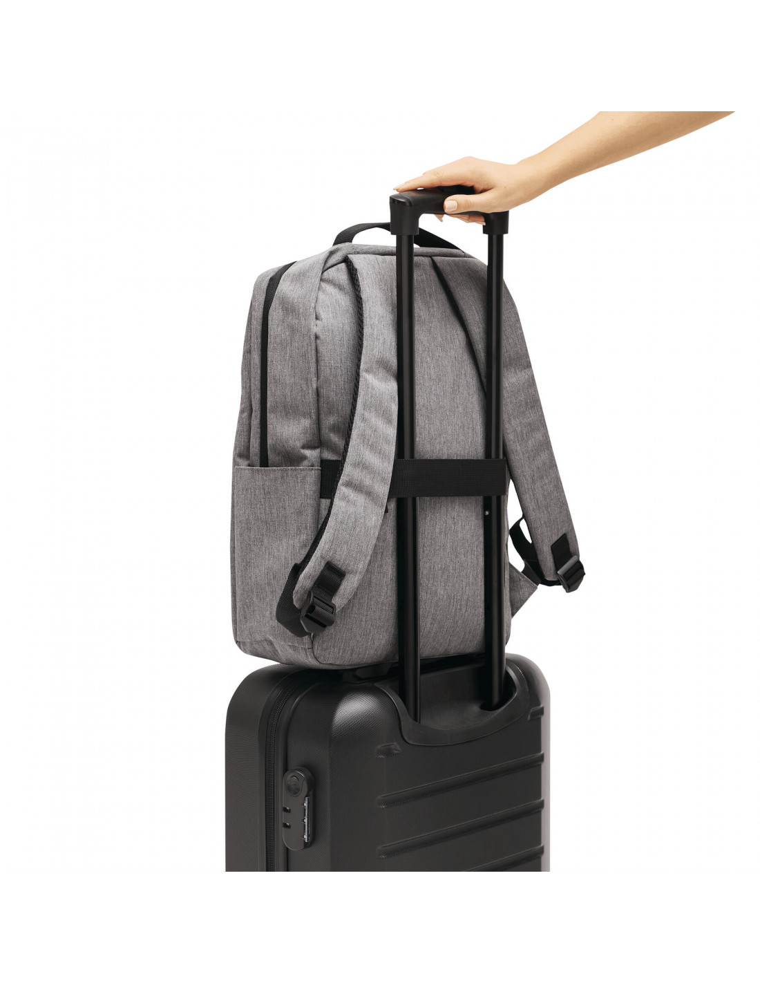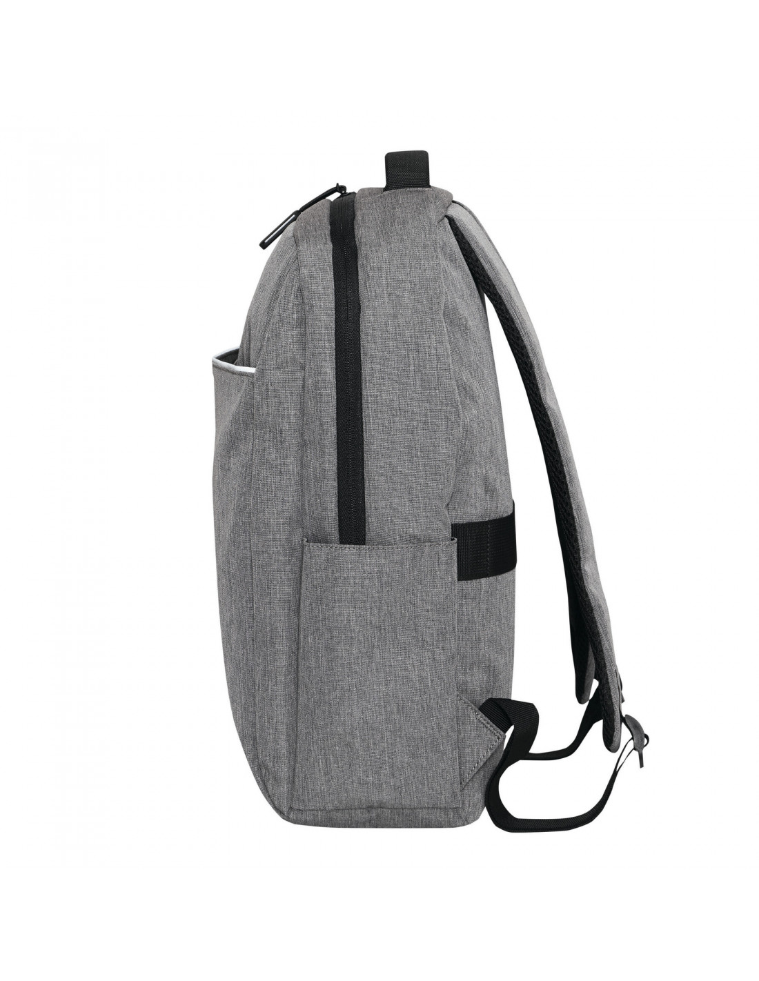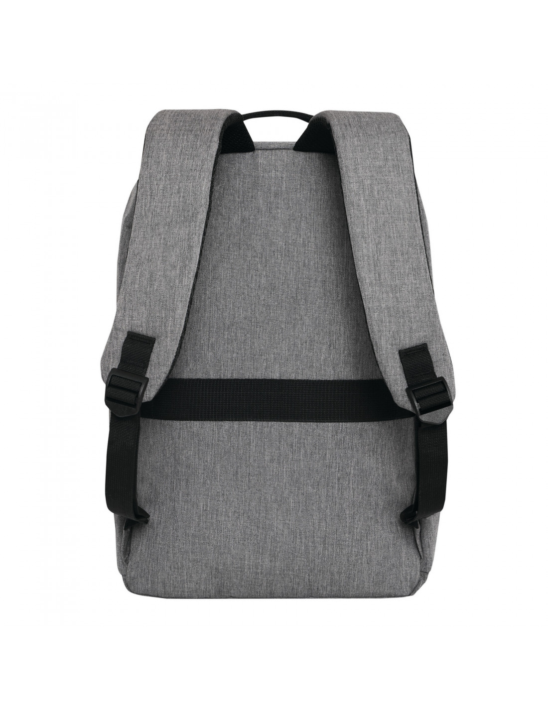 Mochila GHENT: fabricada con poliéster reciclado (rPET), 1 compartimento frontal con cremallera y tira reflectante, compartimento principal con cremallera y funda interior acolchada para portátil o tablet, organizador con 4 bolsillos abiertos, 2 bolsillos laterales, asa de transporte acolchada, correas de hombro acolchadas y ajustables, correa trasera para función de reportero.