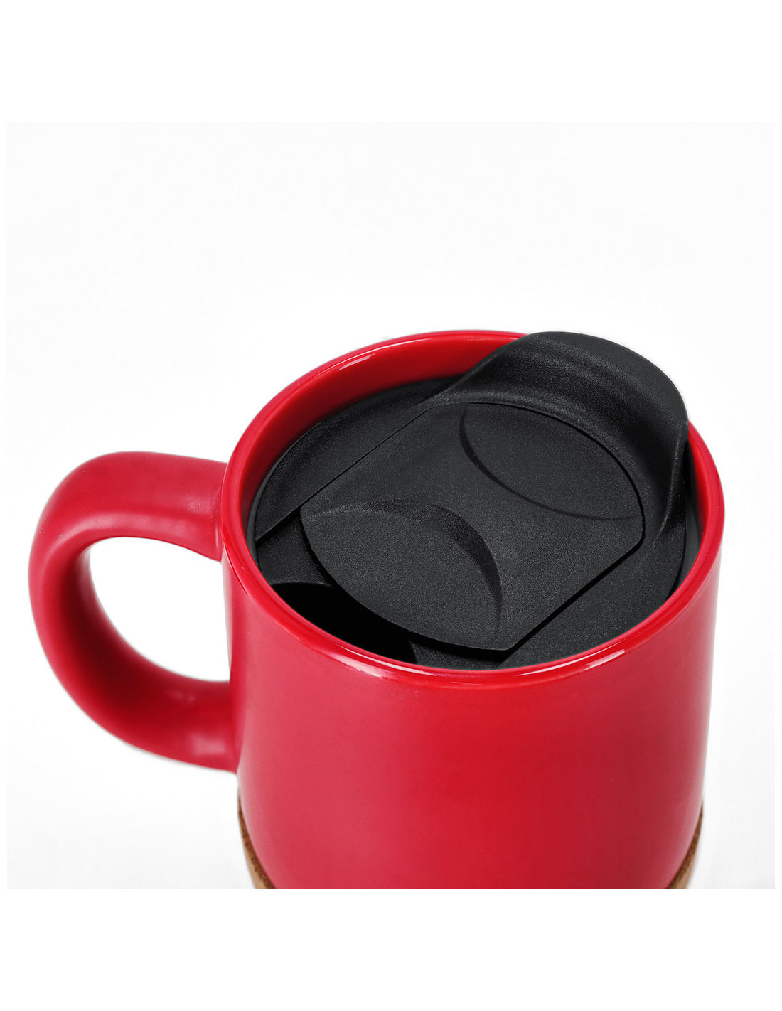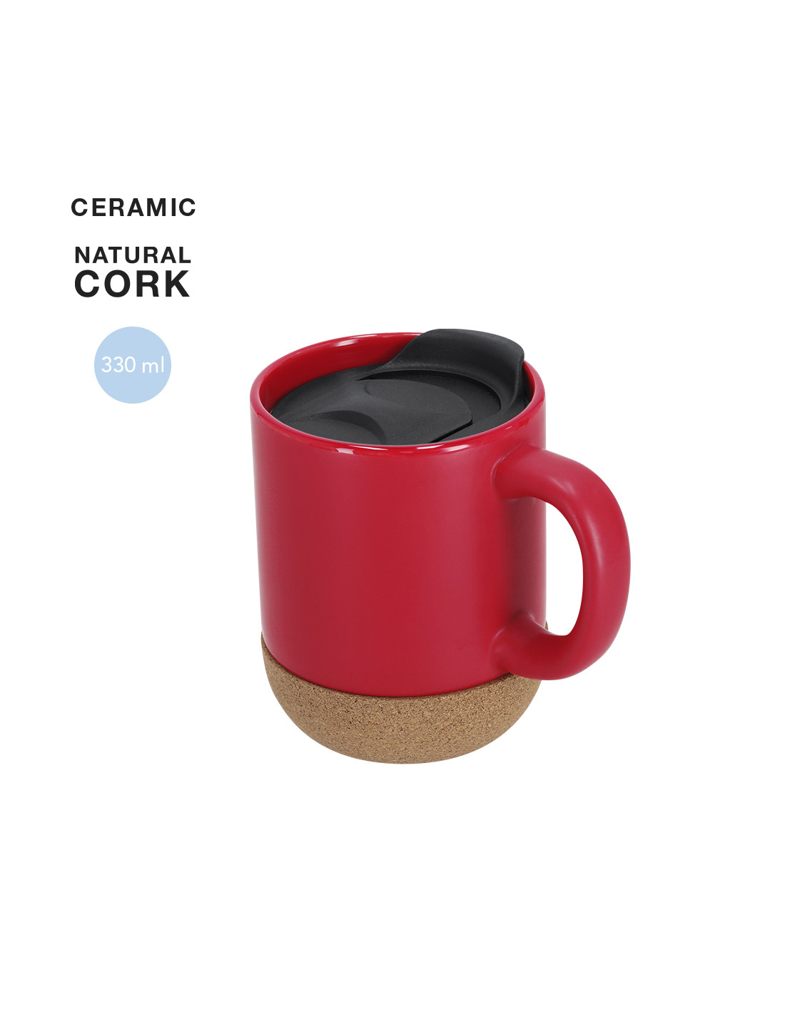 Taza térmica con capacidad de 330 ml fabricada en cerámica. Cuerpo en color mate e interior en acabado brillo con base con corcho, siendo este un excelente aislante térmico. Incluye tapa con función antideslizante para disfrutar de tu bebida favorita. Con asa de agarre.