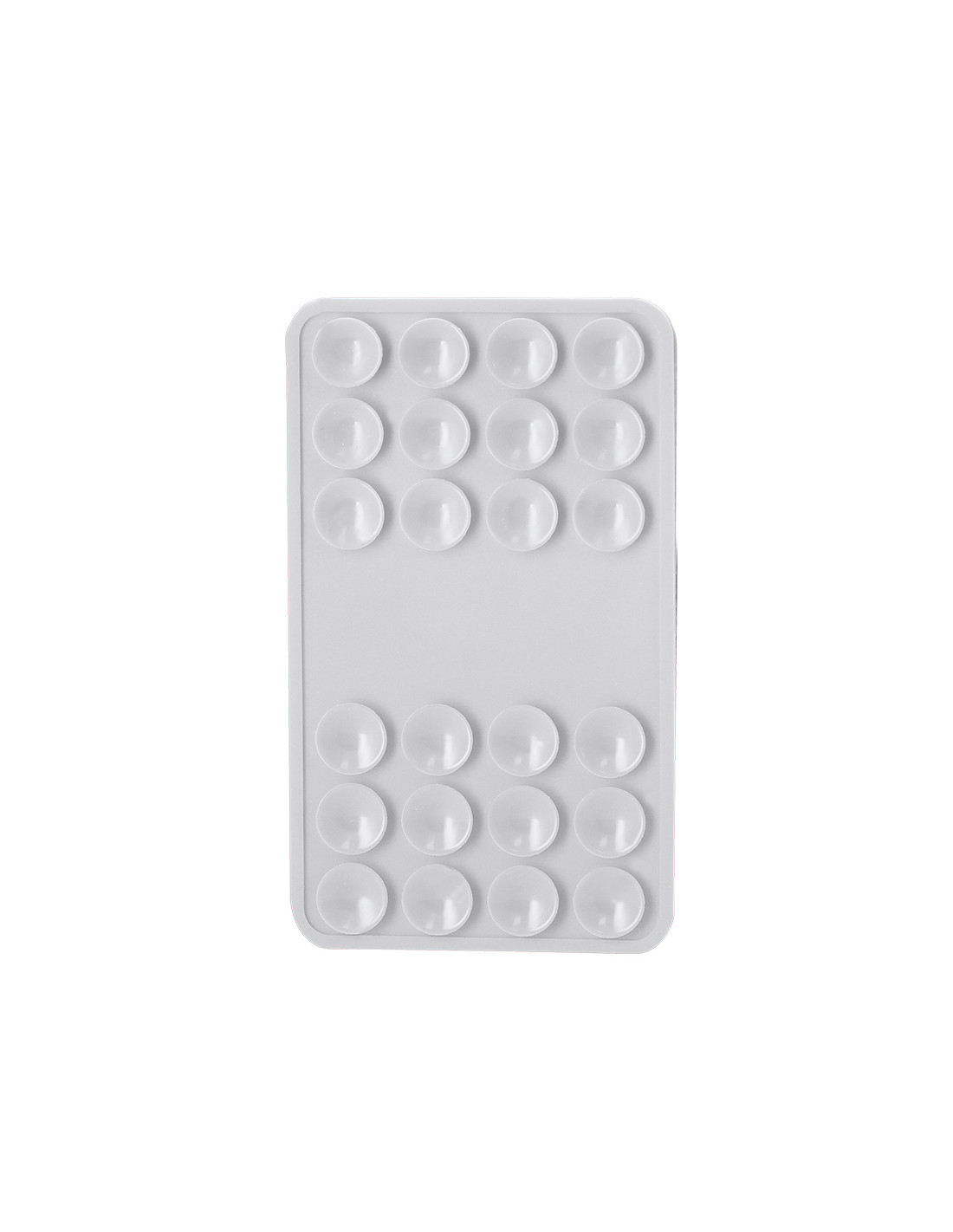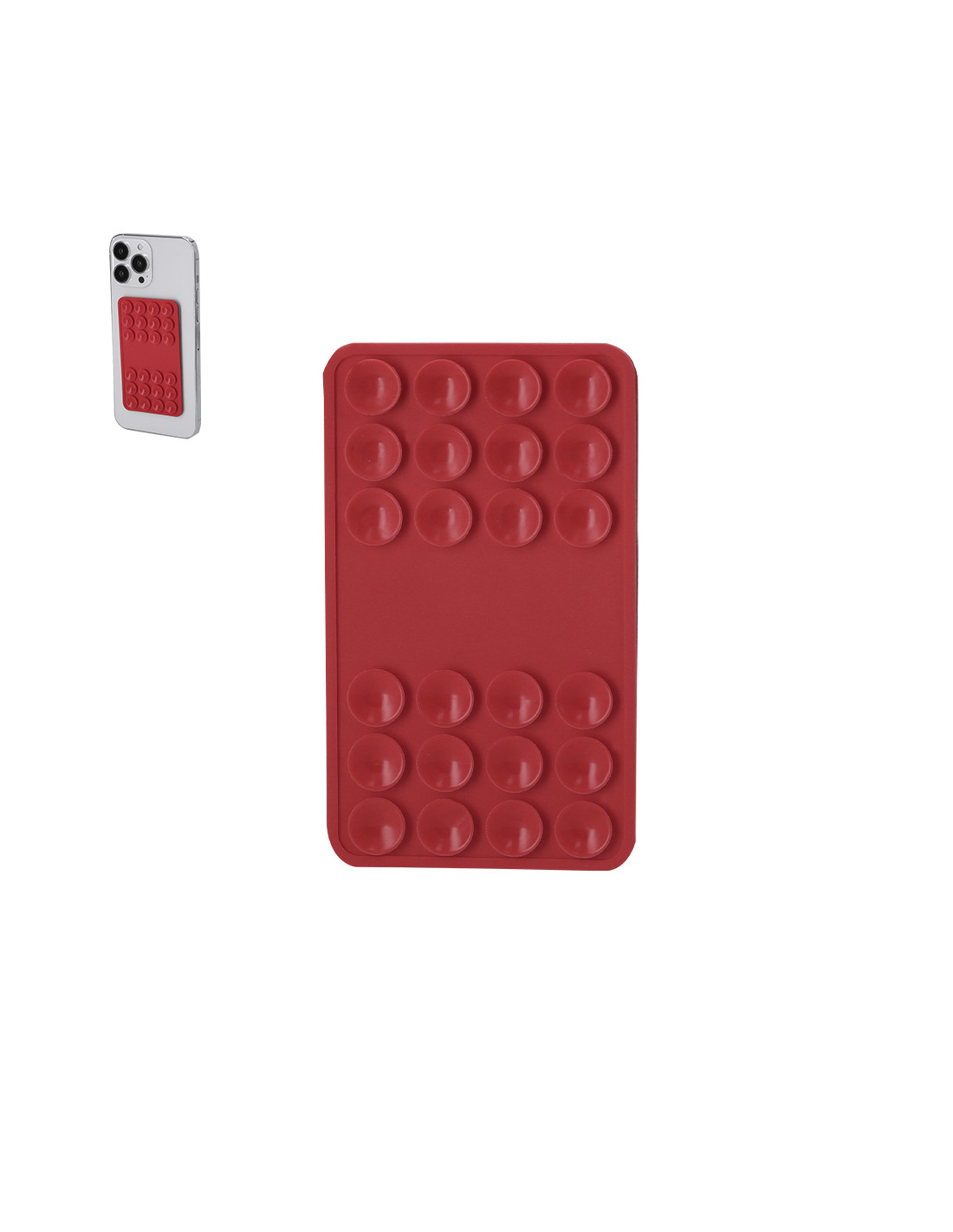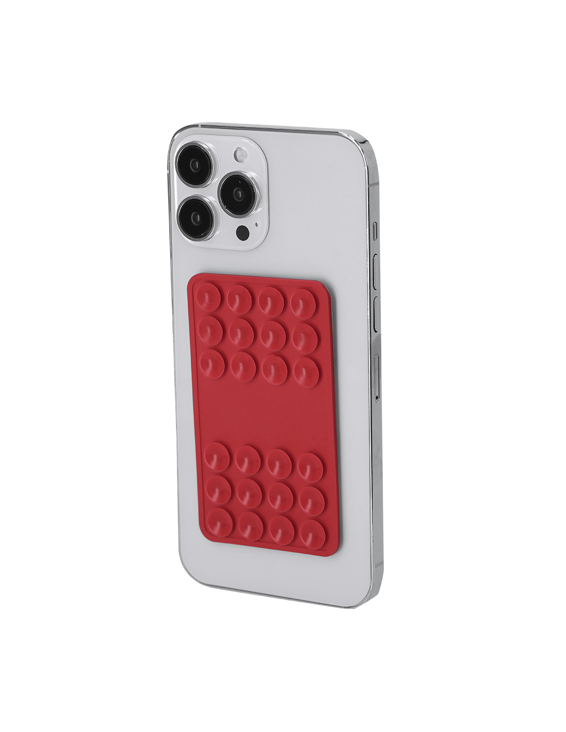 Soporte adhesivo para smartphone en silicona. Con lateral frontal en terminación de ventosa, ideal para poner tu móvil en cualquier superficie.