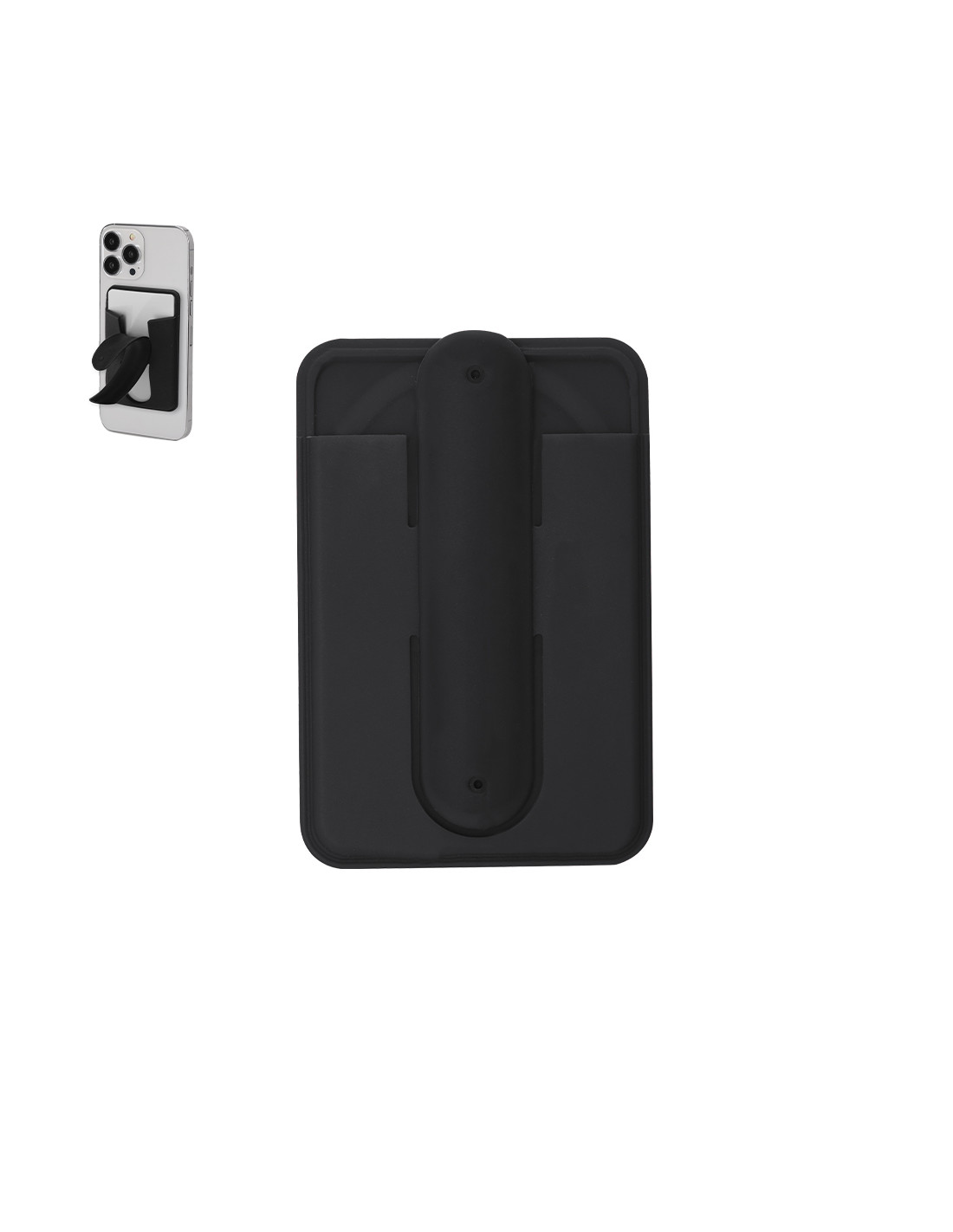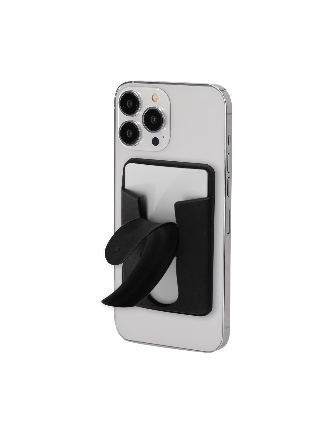 Tarjetero soporte magnético fabricado en silicona. Ideal para visualizar tu smartphone en cualquier posición gracias al diseño multiposición de sus asas plegables. Con compartimento para tarjeta.