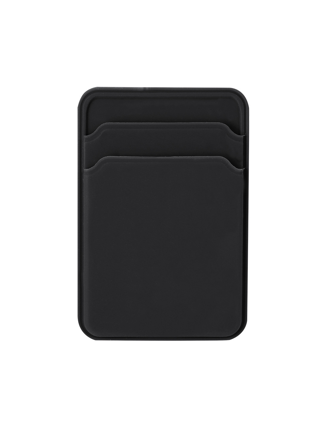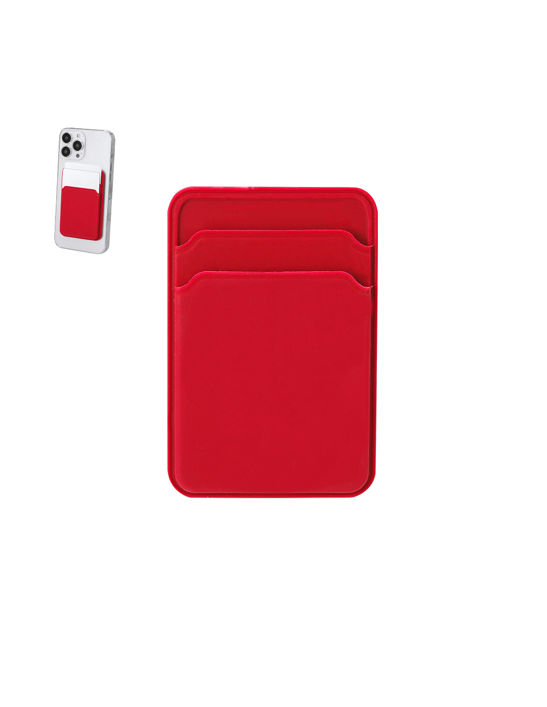 Tarjetero magnético fabricado en silicona. Ideal para llevar con tu smartphone, dispone de dos compartimentos para llevar tarjetas.
