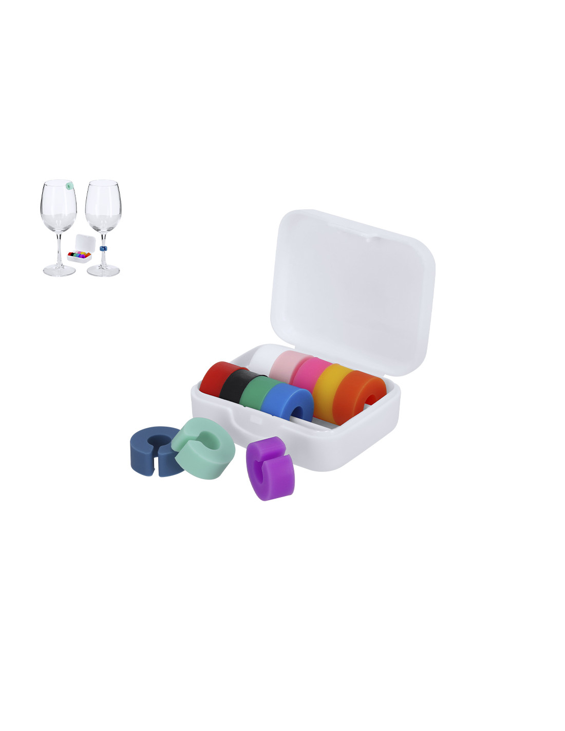 Identificador de copas con 12 identificadores fabricados en silicona flexible para máxima durabilidad. Cada identificador presenta un color único para distinguir fácilmente cada copa añadiendo un toque divertido y personalizado. Presentado en estuche para fácil transporte. Perfecto para eventos, catas, fiestas y reuniones con amigos o familiares.