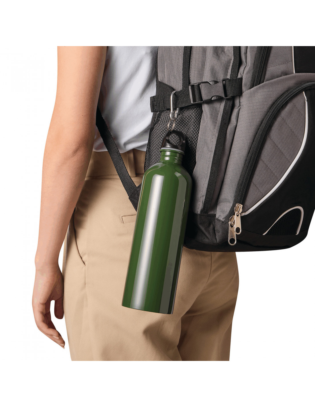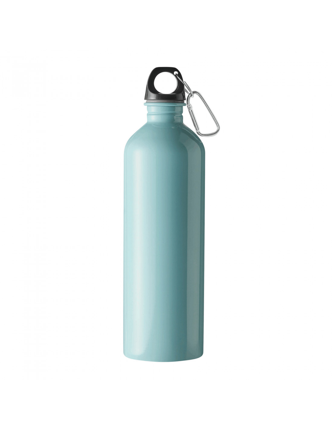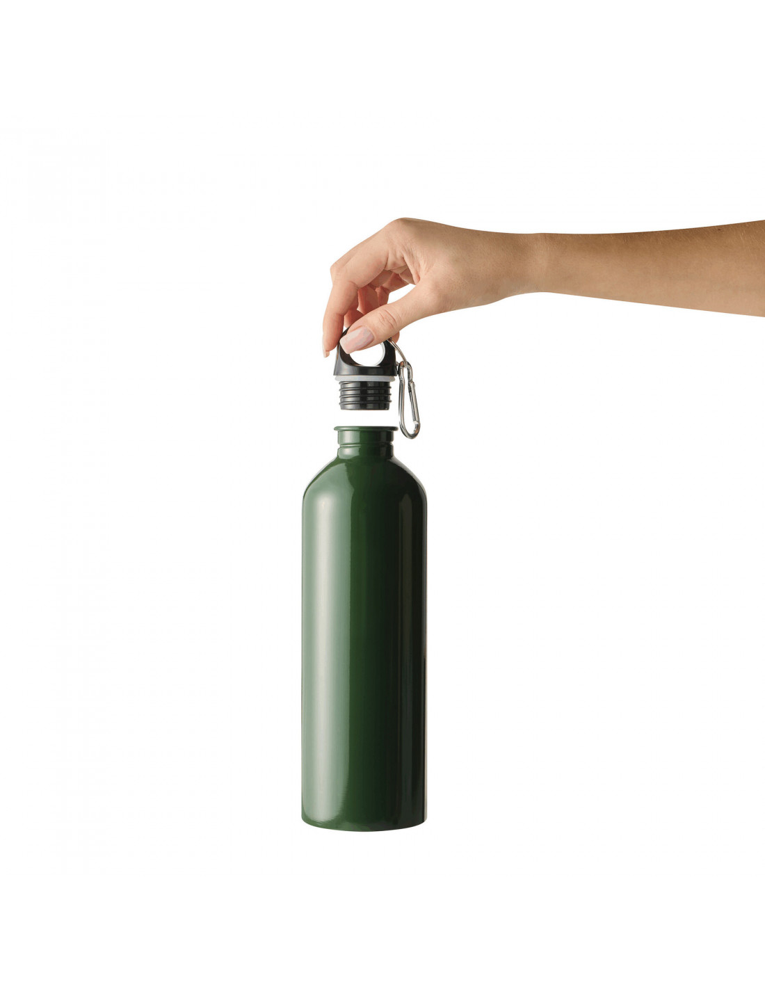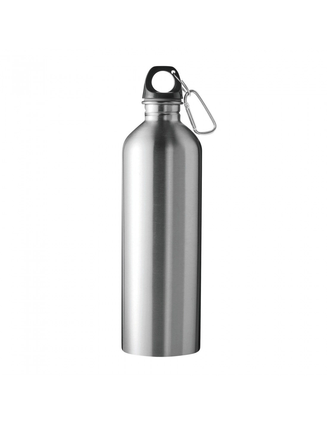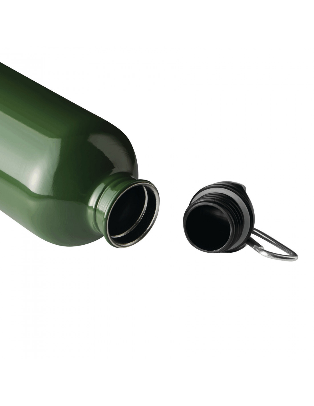 Botella de acero inoxidable STEELTRANSIT, de pared simple: fabricada en acero inoxidable reciclado, tapón de rosca negro de plástico, junta de silicona, asa de transporte, llavero y mosquetón (el mosquetón NO es apto para escalada), capacidad aprox. 750 ml