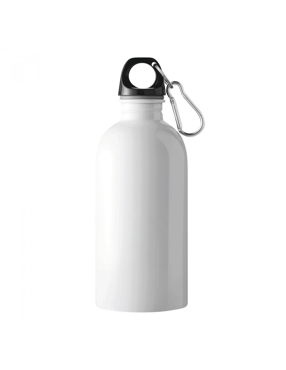 Botella de acero inoxidable SMALLTRANSIT, de pared simple: fabricada en acero inoxidable reciclado, tapón de rosca negro de plástico, junta de silicona, asa de transporte, llavero y mosquetón (el mosquetón NO es apto para escalada), capacidad aprox. 400 ml.
