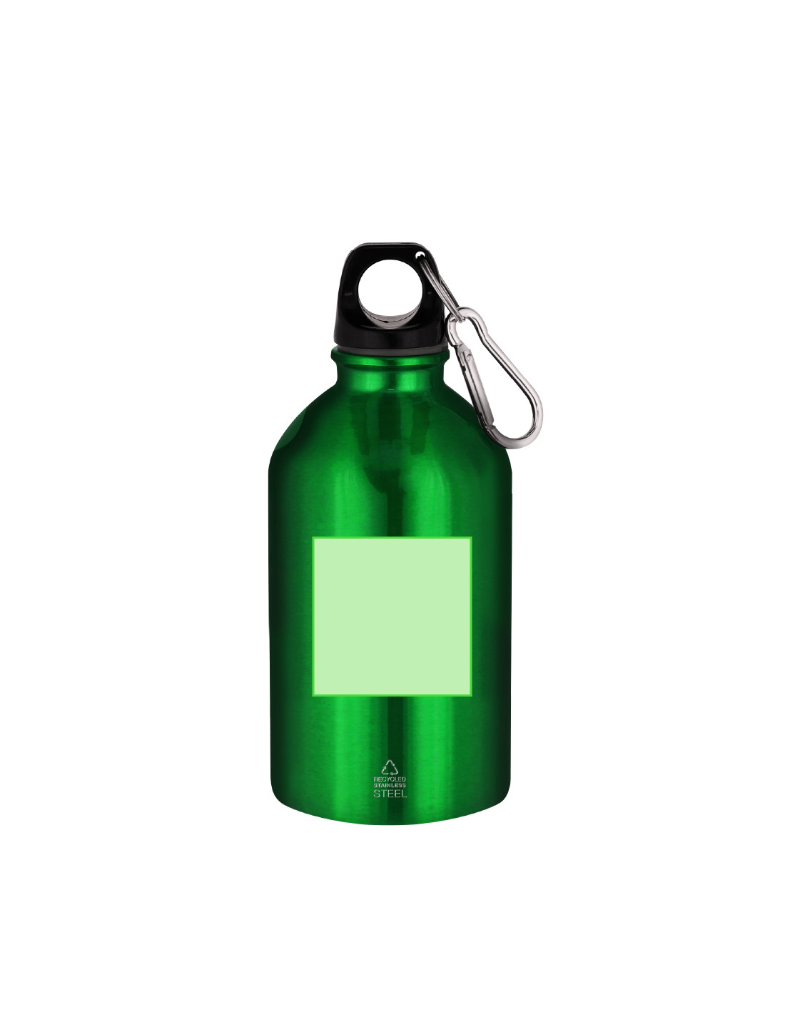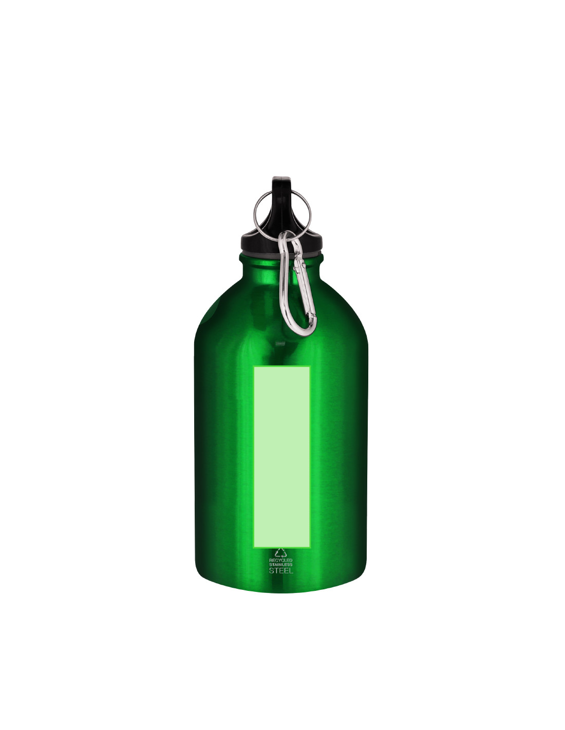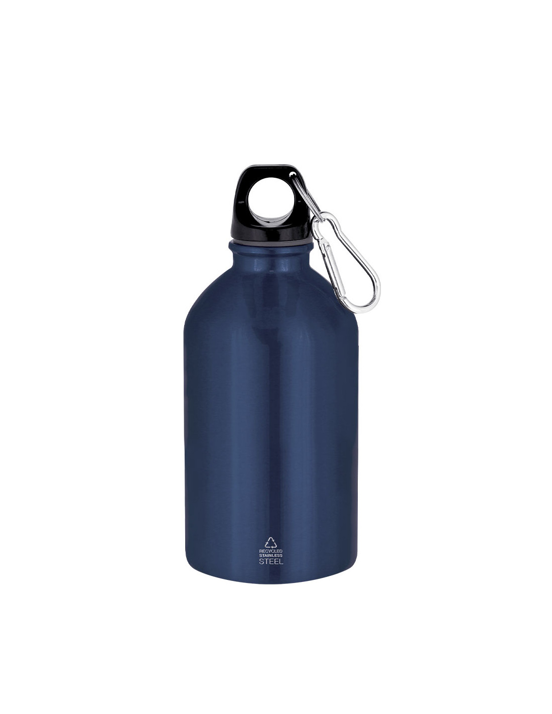 Bidón con 500 ml de capacidad. Fabricado en Acero Inoxidable Reciclado con acabado metalizado. Tapón negro de cierre a rosca para garantizar un sellado óptimo. Incluye mosquetón metálico que facilita su transporte. Con distintivo Acero Inoxidable Reciclado.