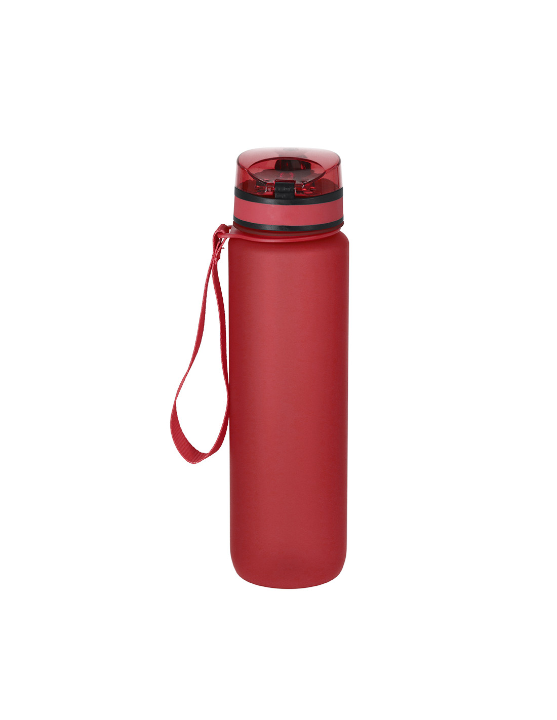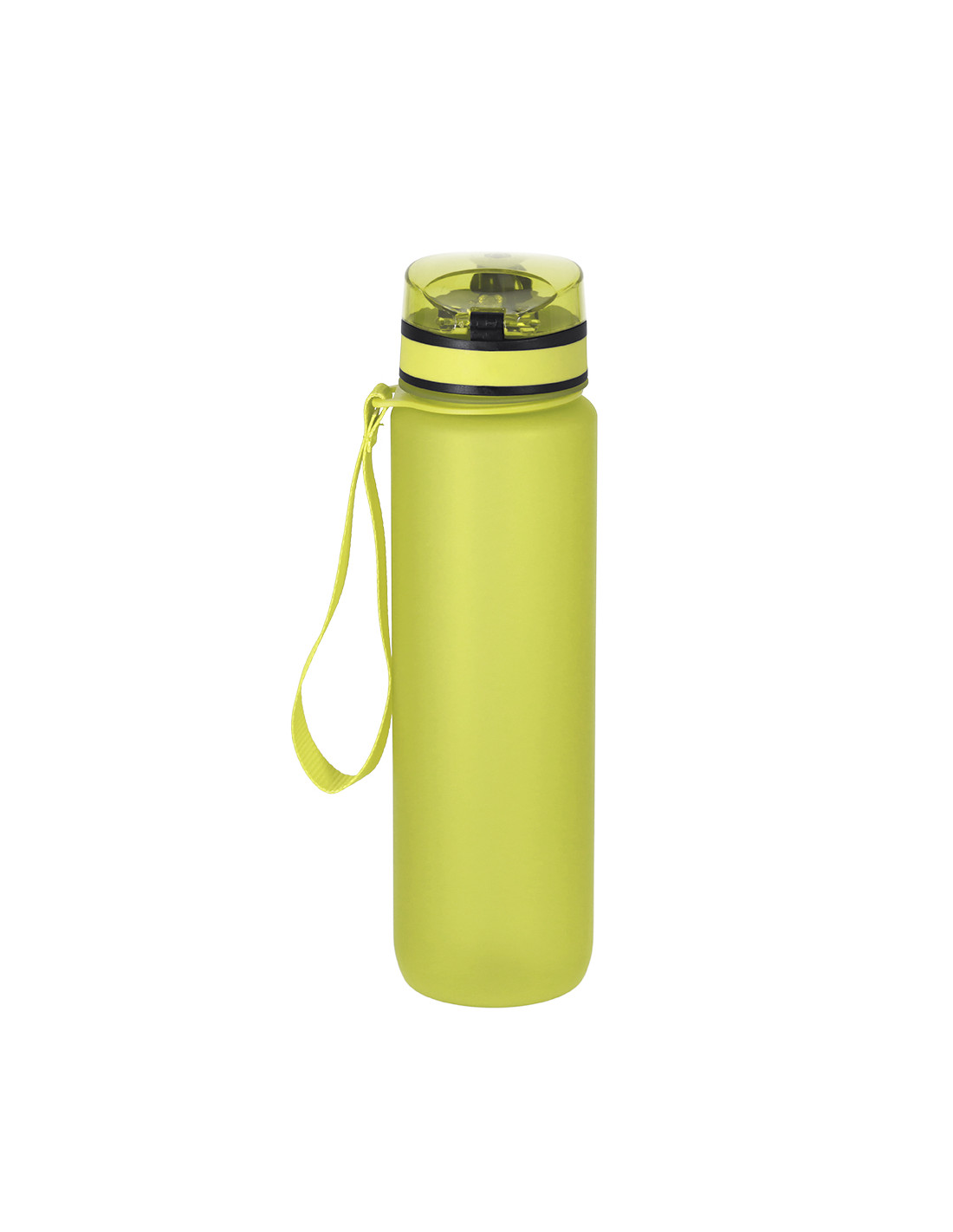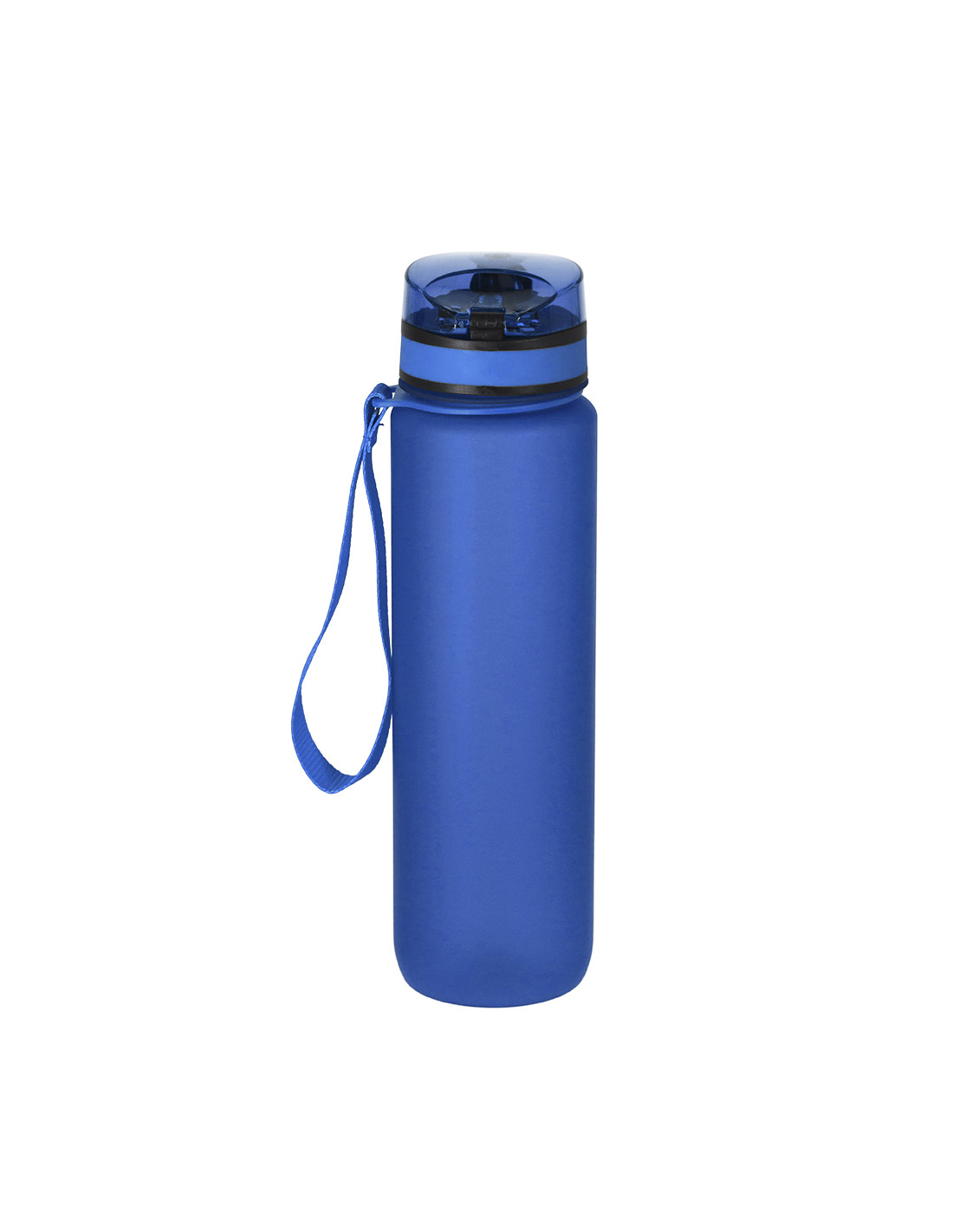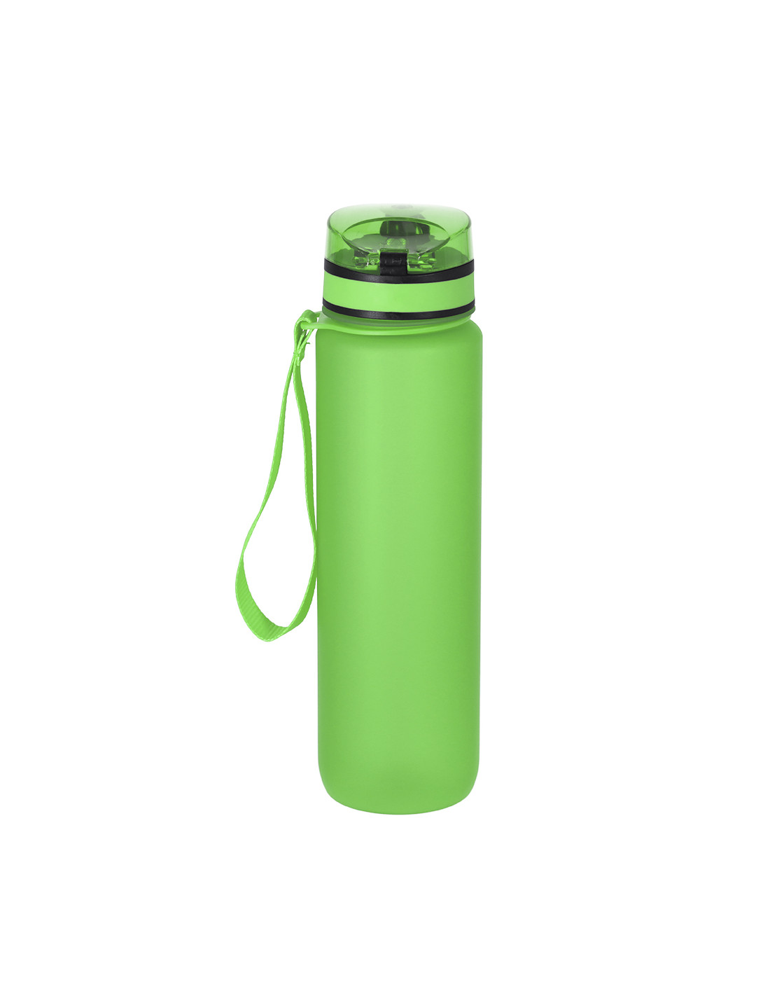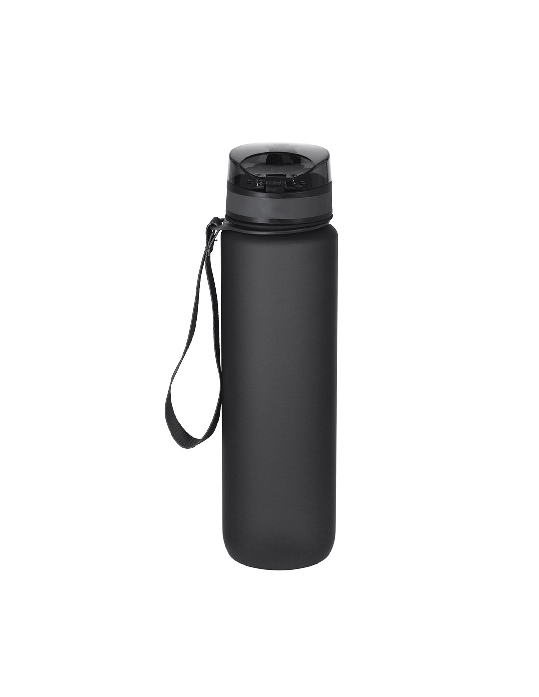 Bidón de 1L de capacidad, fabricado en resistente RPET y en acabado translúcido mate. Con indicador de capacidad en litros y onzas, junto con frases motivadoras que invitan a mantener una adecuada hidratación. Con tapón negro de rosca y tapa con capucha plástica transparente con cierre en push. Con boquilla y cierre de seguridad y cómoda cinta de transporte. Libre de BPA.