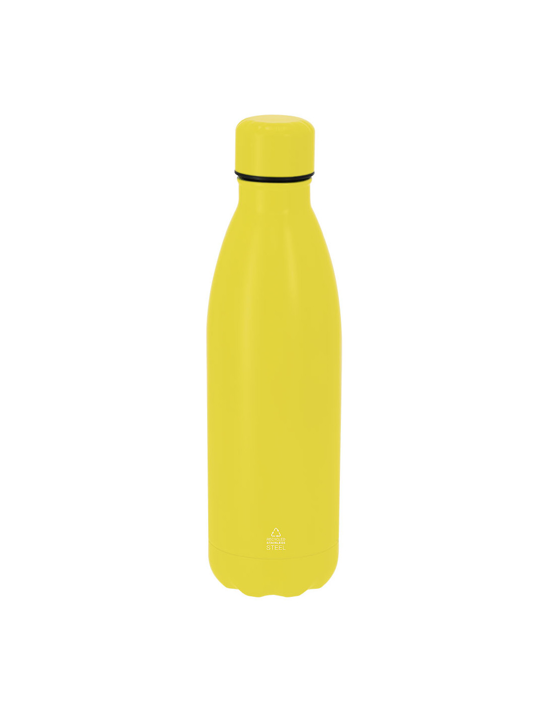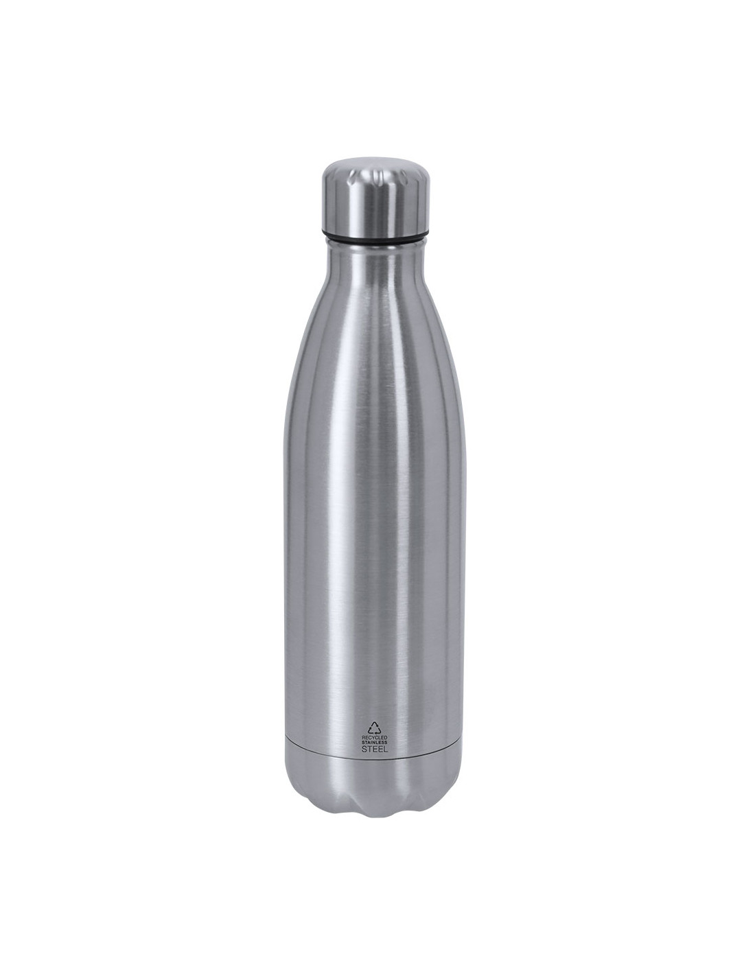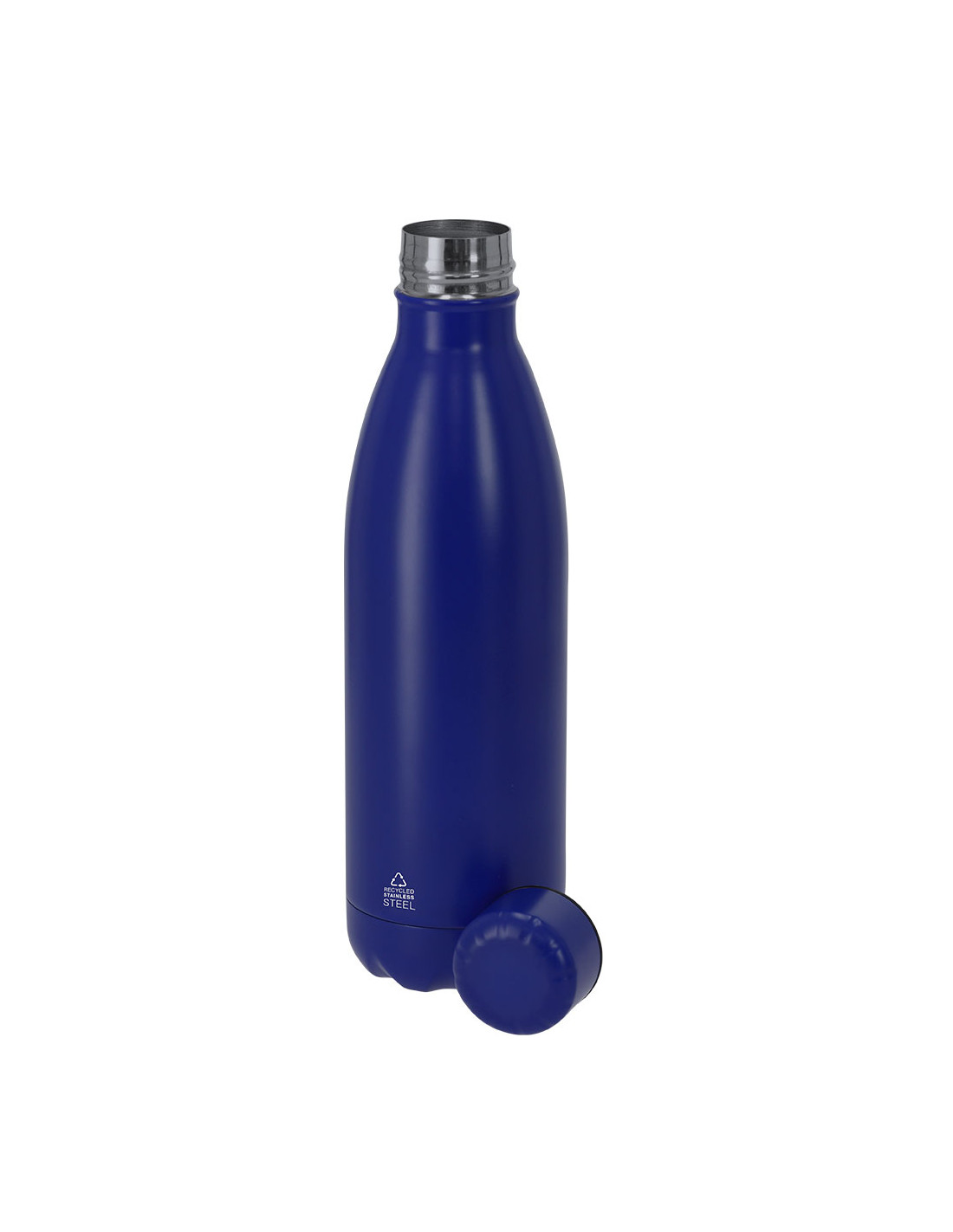 Bidón térmico de 500 ml de capacidad, fabricado en acero inox reciclado de doble pared. Su diseño combina cuerpo con tapón a rosca en color a juego con acabado mate. Libre de BPA. Incluye distintivo de acero inox reciclado.