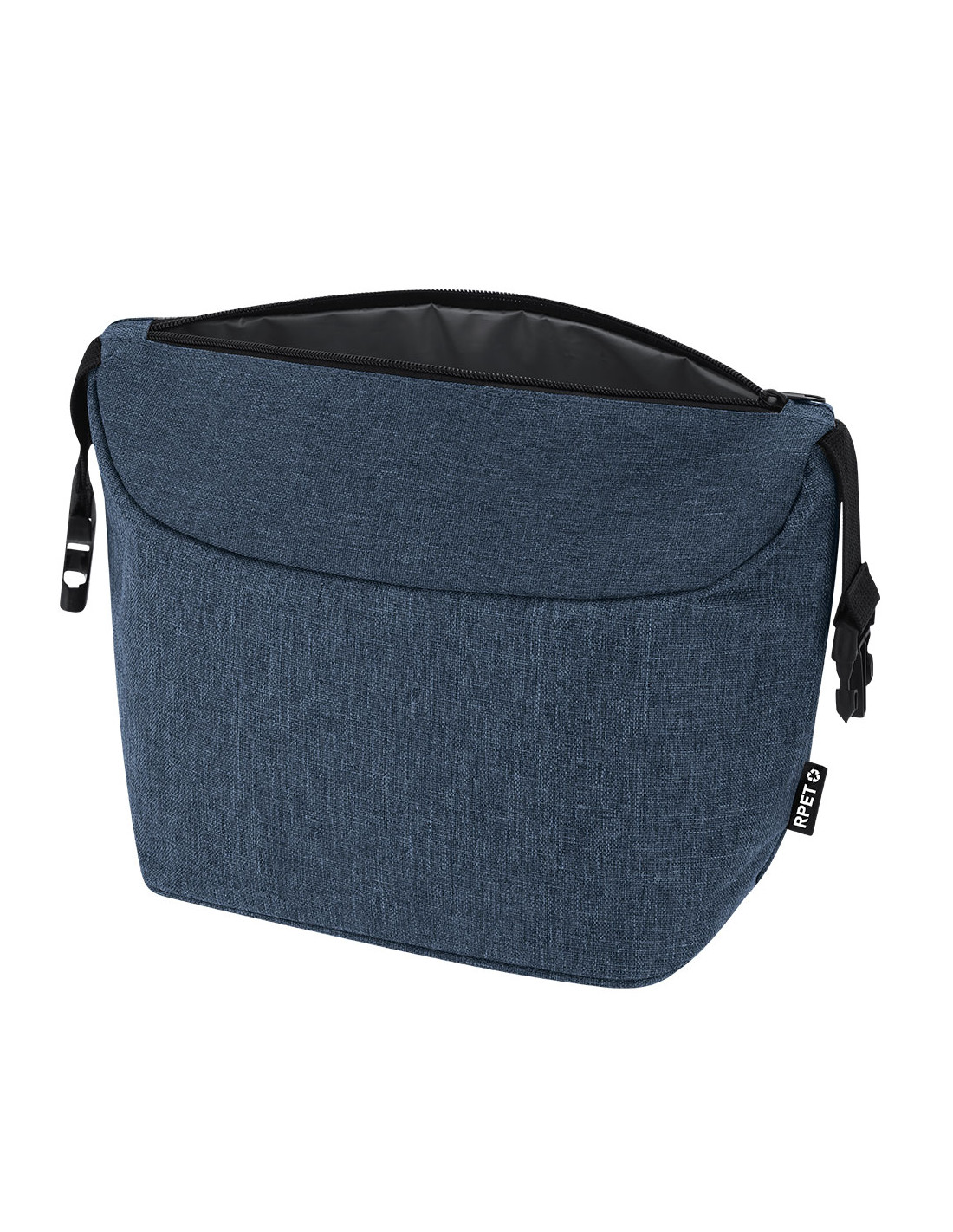 Nevera confeccionada en 600D RPET. Diseño original y hebilla en ambos extremos, que facilita el transporte y aporta mayor funcionalidad en su uso. Cuenta con un compartimento interior principal térmico. Incluye etiqueta RPET.El material RPET se elabora a partir de plástico reciclado, para así fomentar la reutilización de residuos plásticos y ayudar a la sostenibilidad del planeta.