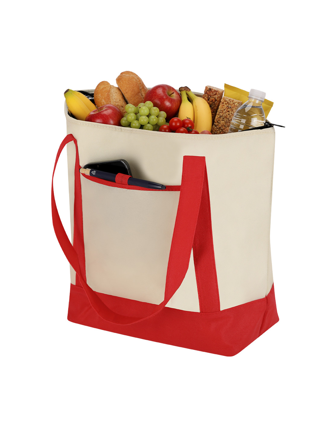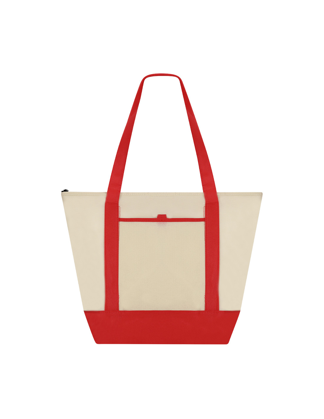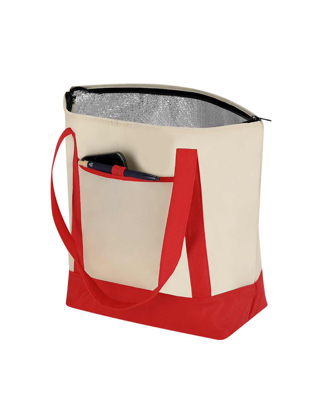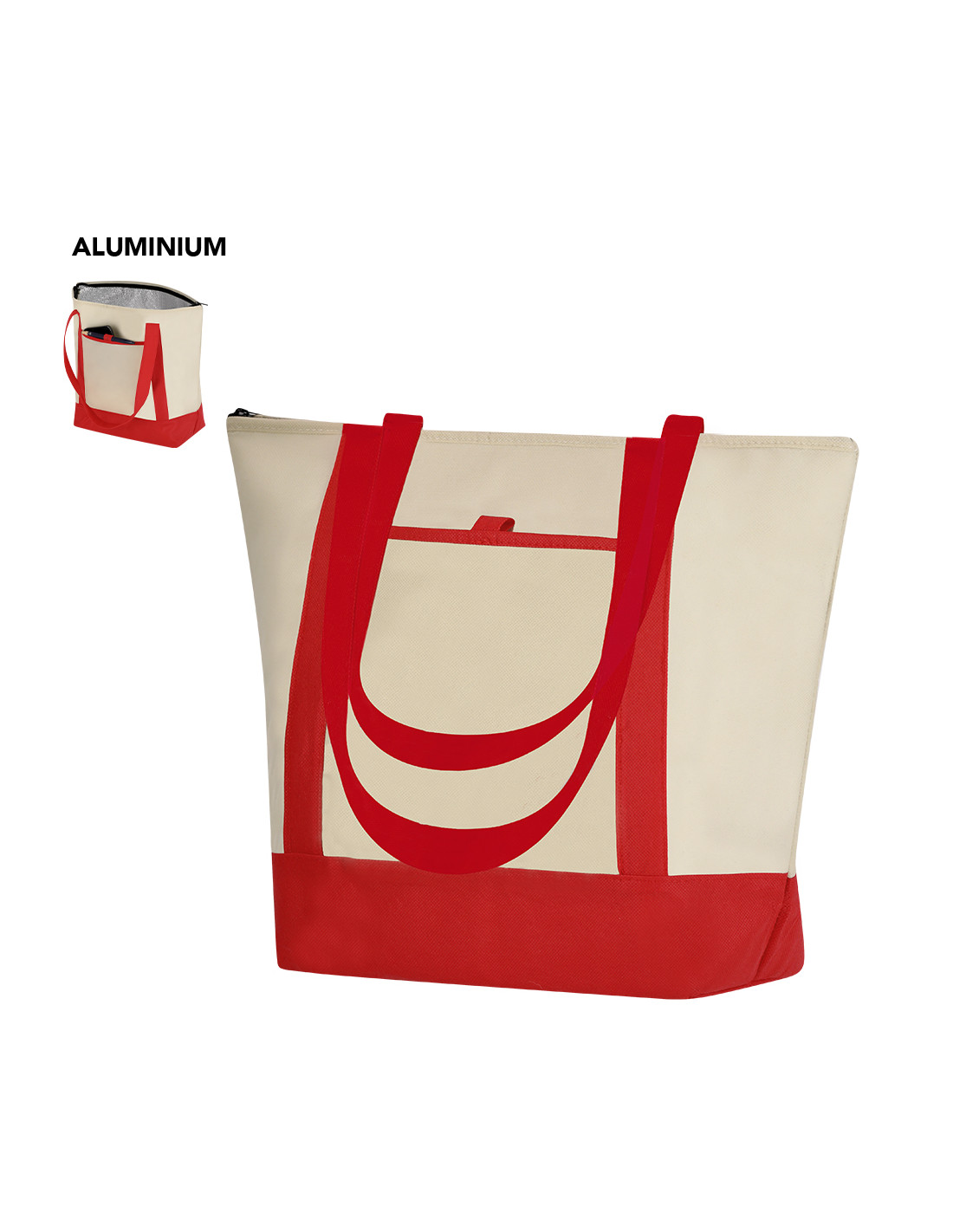 Bolsa nevera en Non-women. Con cierre de cremallera y asas medianas de 60cm reforzadas. Fuelle en base.Interior acabado en aluminio. Bolsillo frontal abierto. Resistencia hasta 5kg de peso.