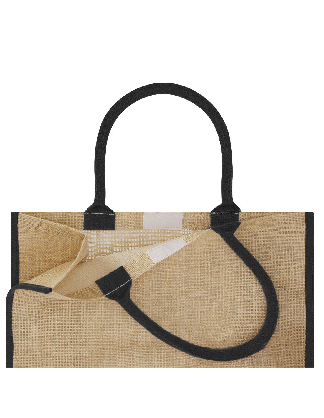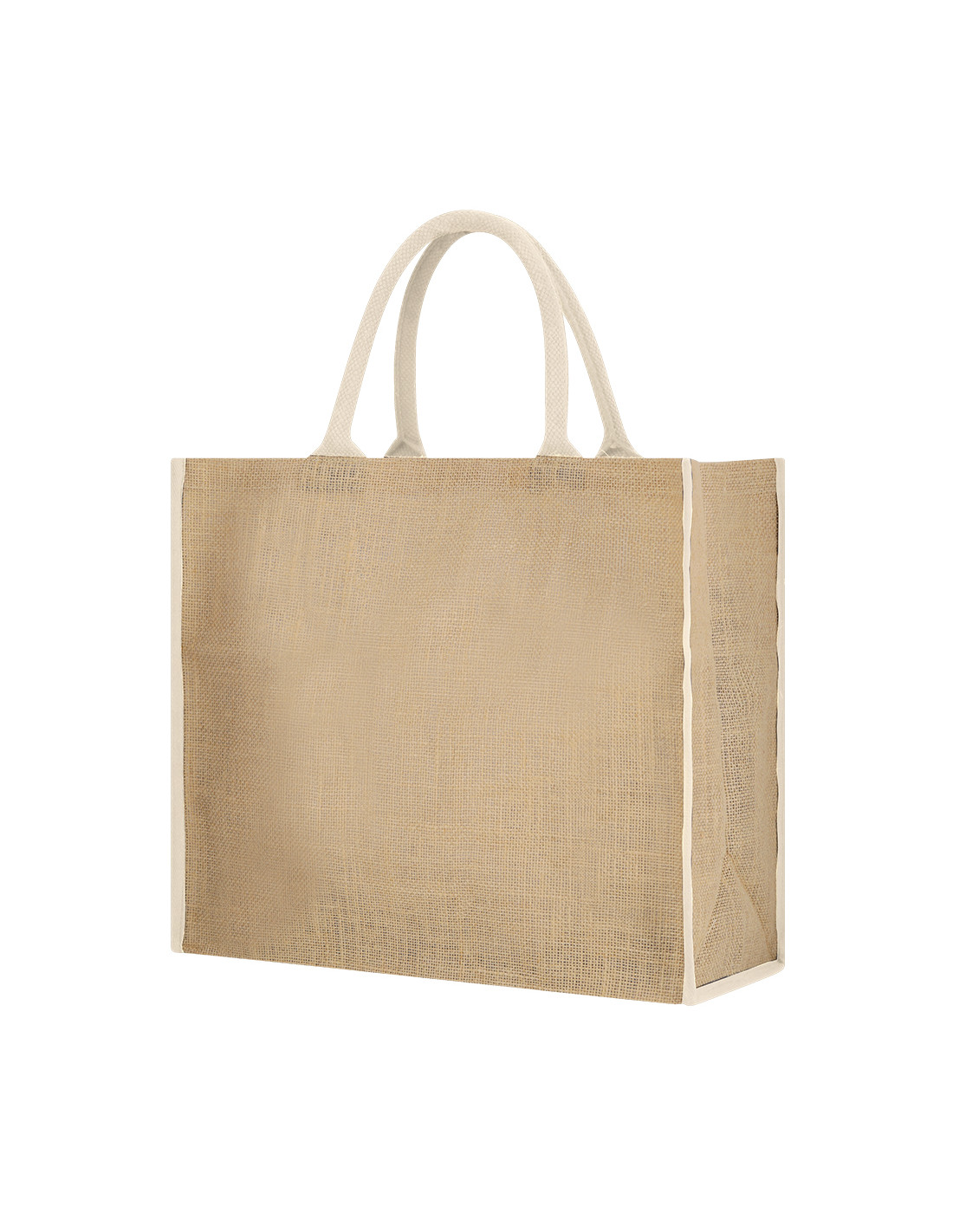 Bolsa confeccionada principalmente en Yute de 300 g/m2. De práctico y moderno diseño, incorpora asas cortas reforzadas. Fuelle en base y laterales. Incluye cierre de velcro seguridad.