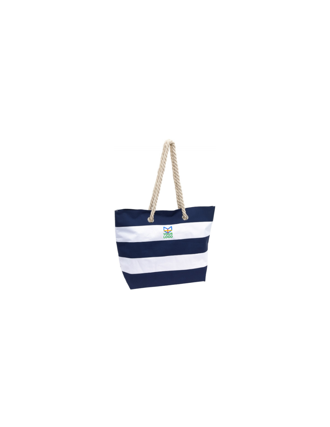 Bolsa de playa SYLT: a rayas en colores marítimos, espacioso compartimento principal con cierre de velcro, bolsillo adicional con cremallera en el interior para artículos pequeños, 2 asas de cordón en algodón