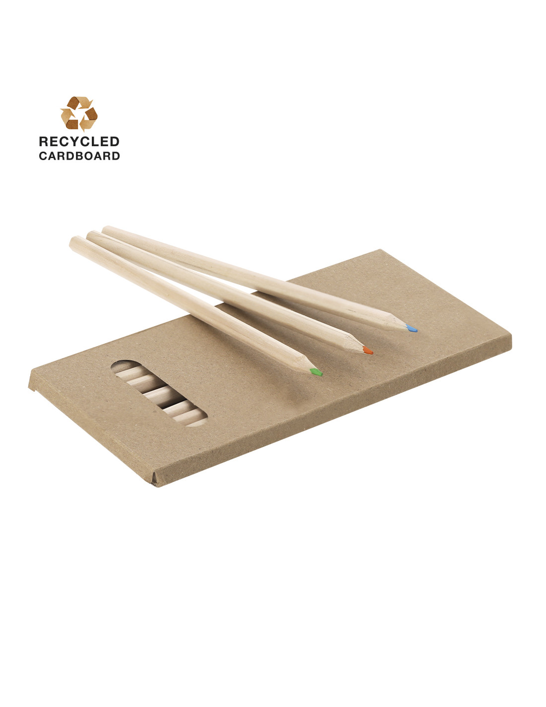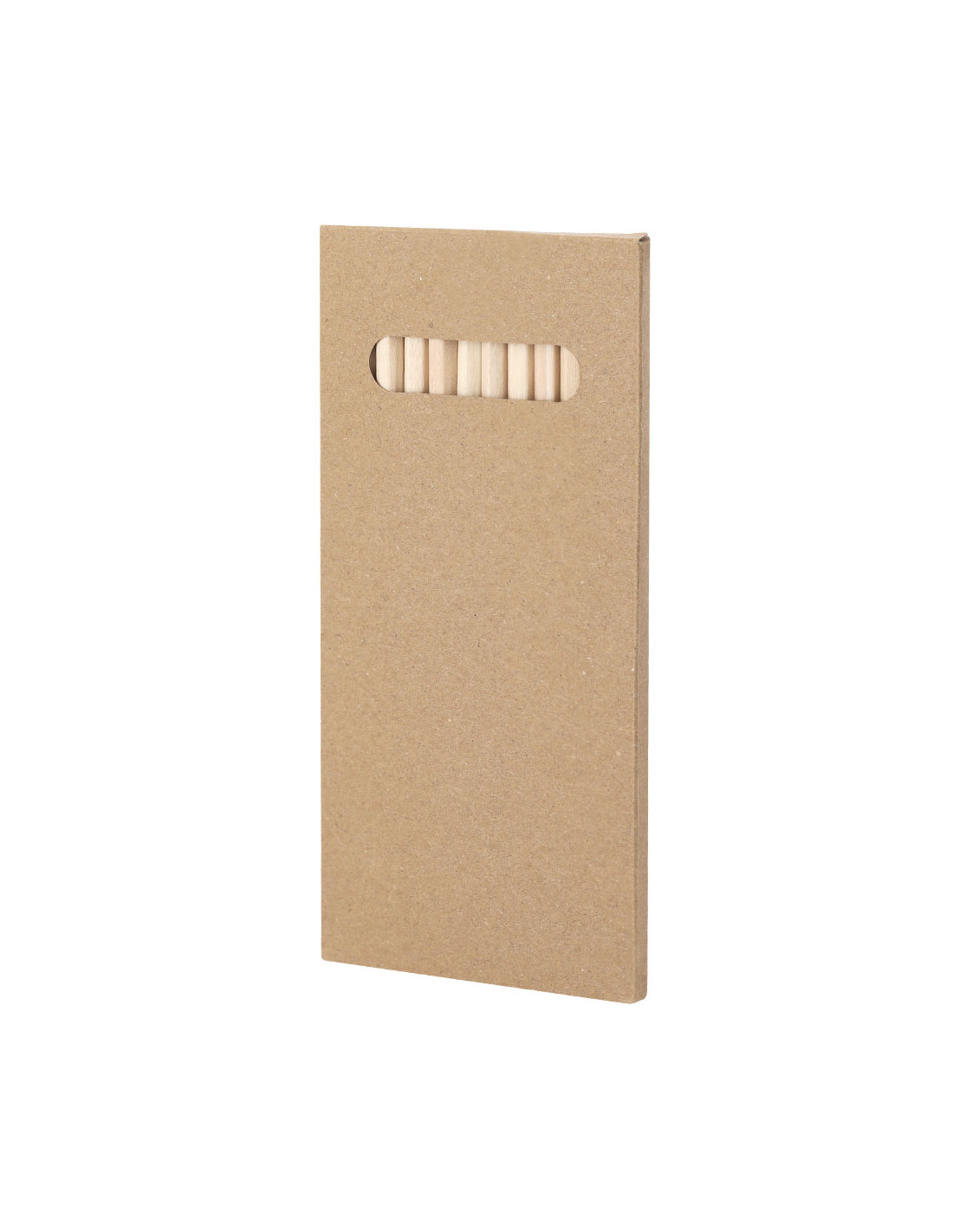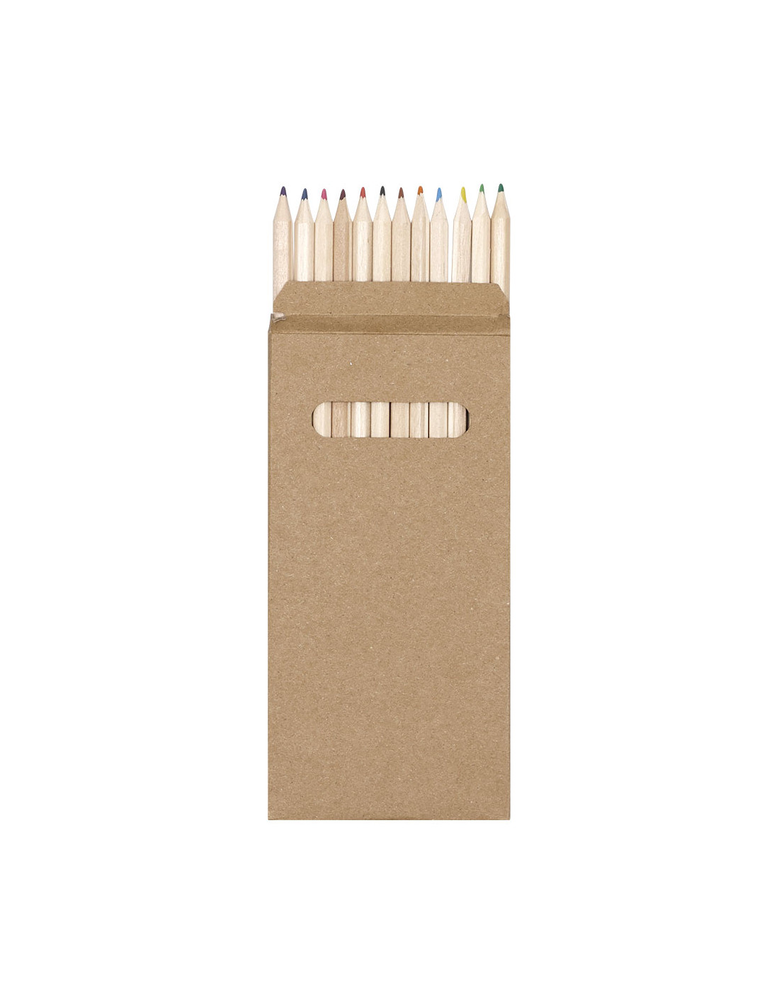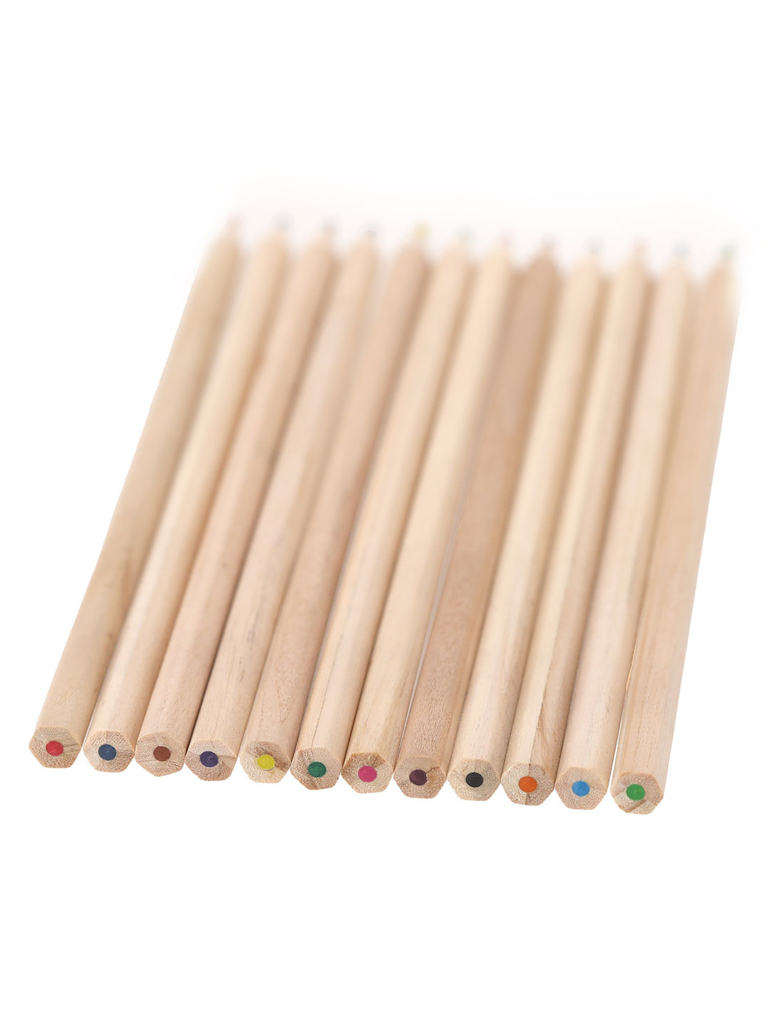 Caja de 12 lápices en caja de cartón reciclada con ventana. Lápices de madera con cuerpo hexagonal con minas en divertidos colores.