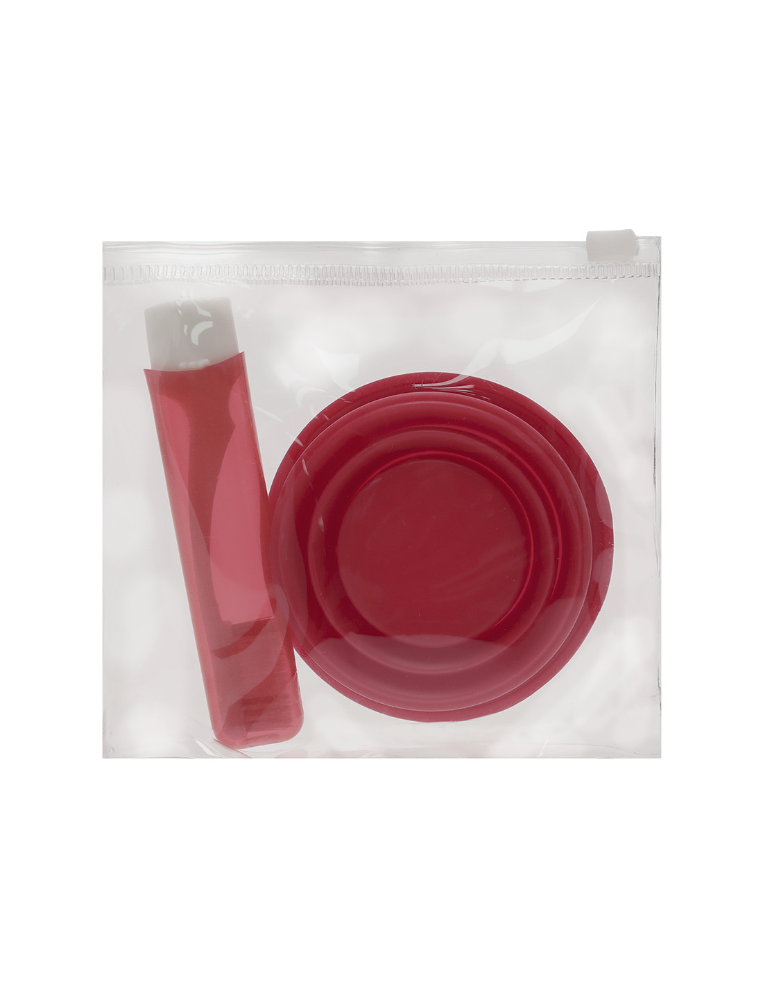 Set de cepillo de dientes y vaso plegable. Incluye un cepillo de dientes fabricado en PP plegable para reducir espacio, y vaso de silicona plegable, presentados en bolsa de PVC transparente con cierre de zip.