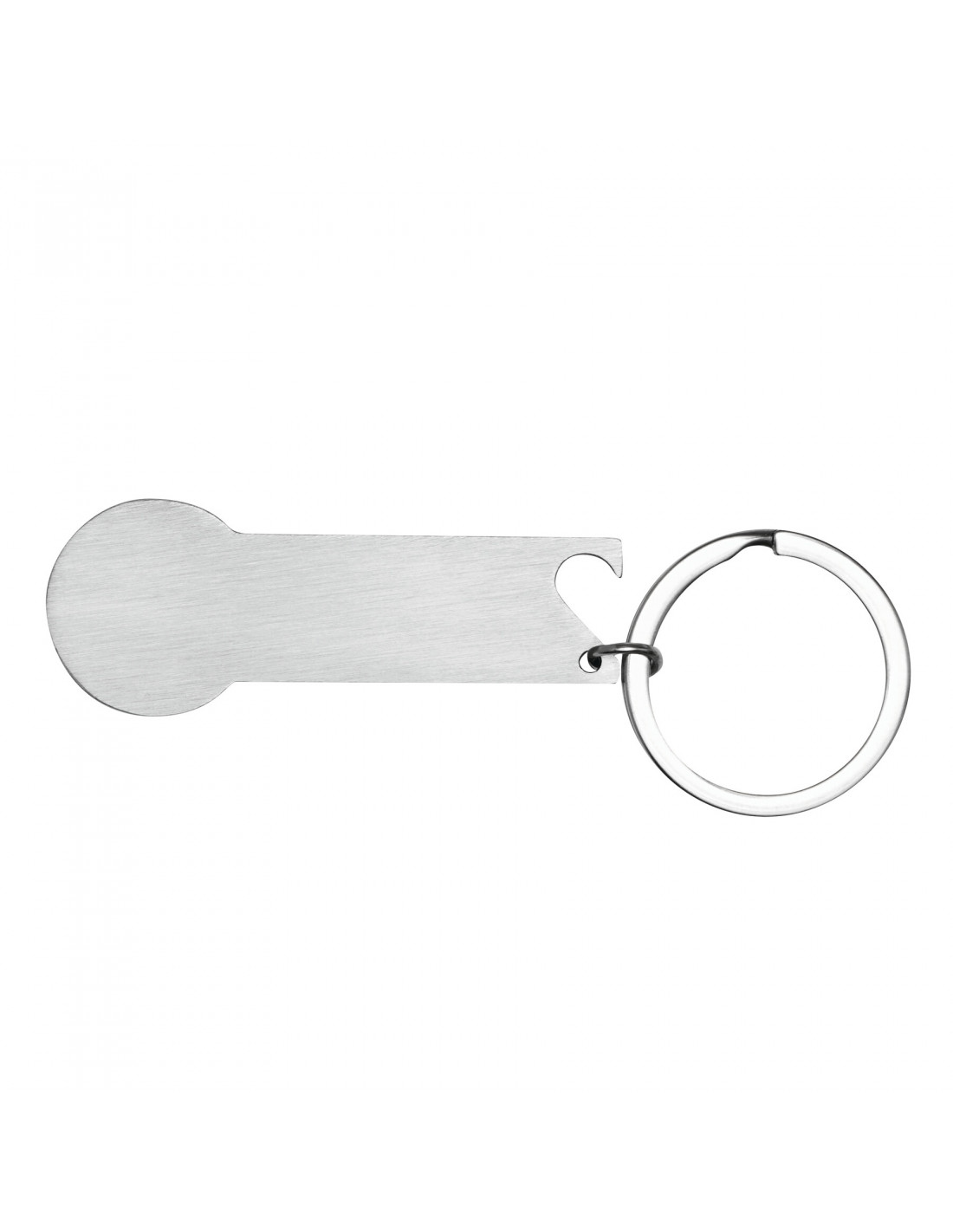 El llavero NO COIN es un accesorio práctico y multifuncional, diseñado con el tamaño de una moneda de 1 euro, perfecto para usar en carros de la compra que requieren fichas. Su abrebotellas integrado añade funcionalidad extra, convirtiéndolo en un llavero útil tanto para compras como para uso diario.