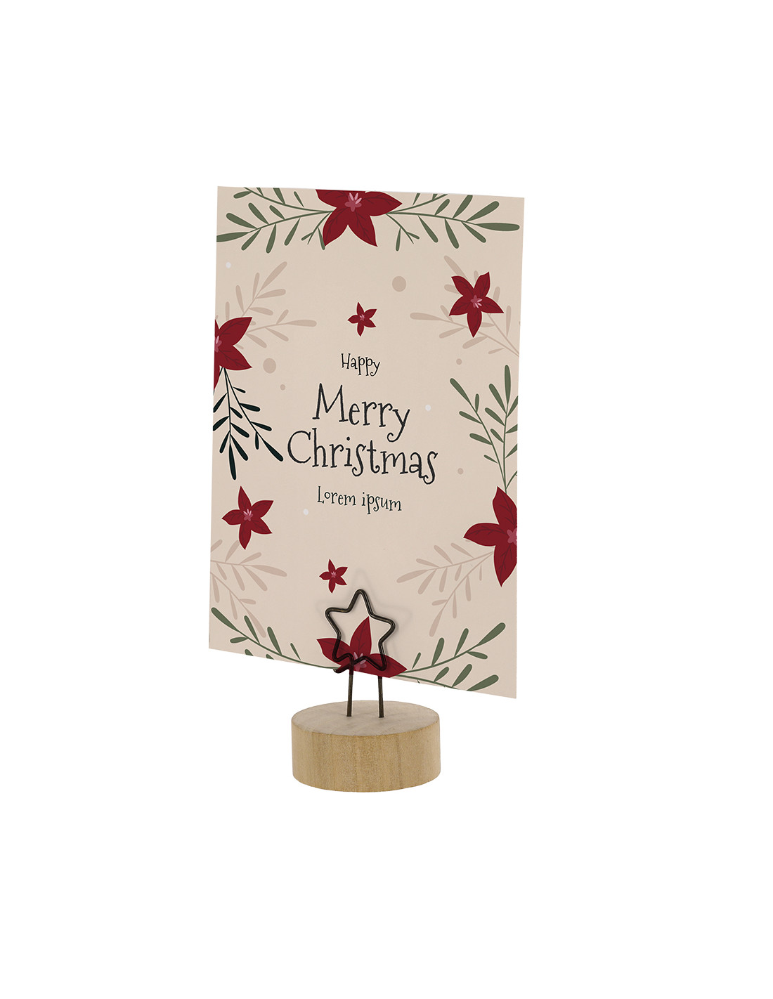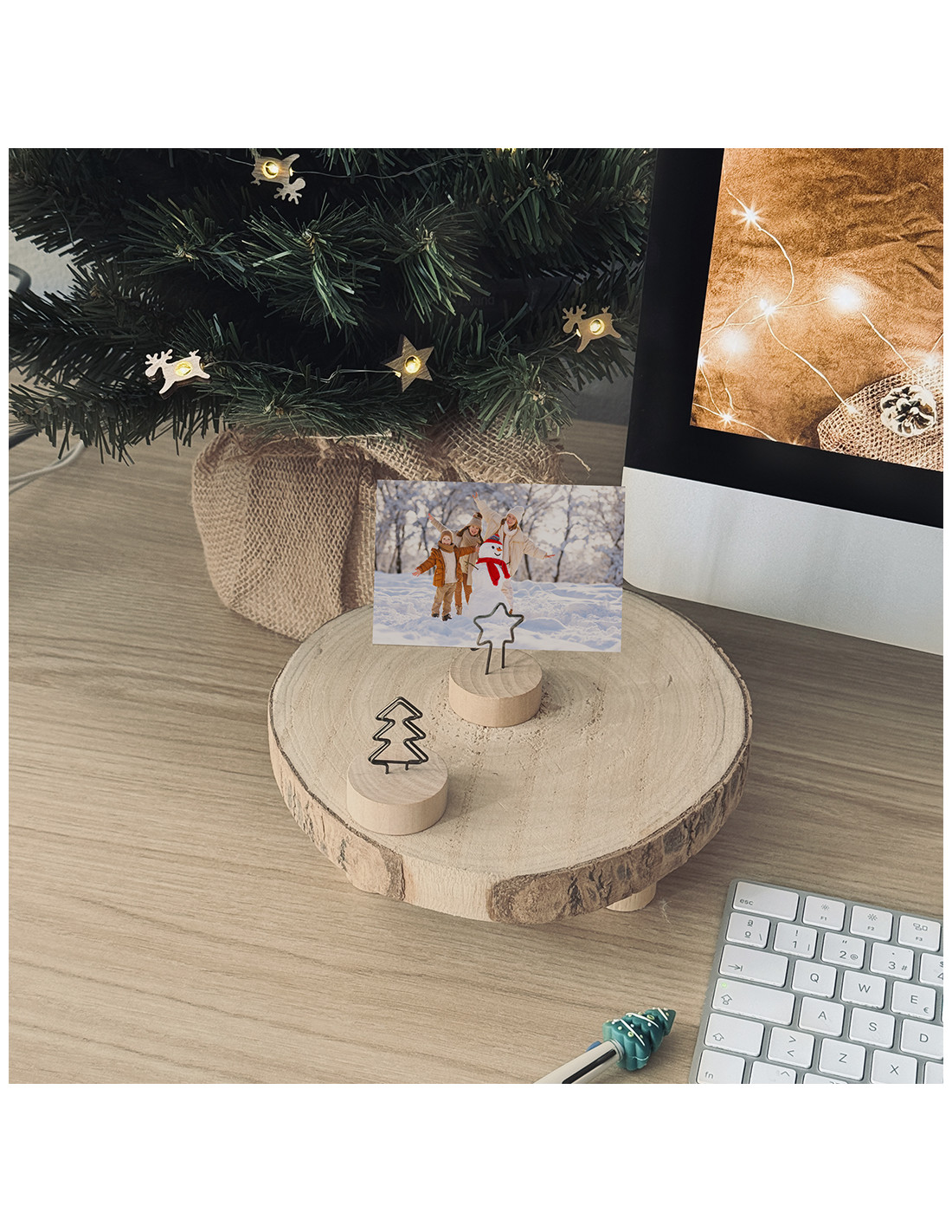 **Composición y materiales:** Clip de diseño navideño. Con clip metálico ideal para sujetar notas, fotos, tarjetas o añadir un detalle y base en madera natural.