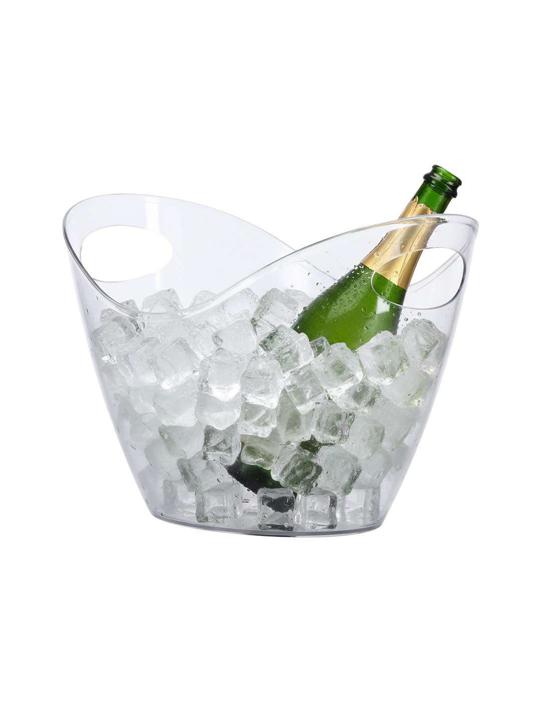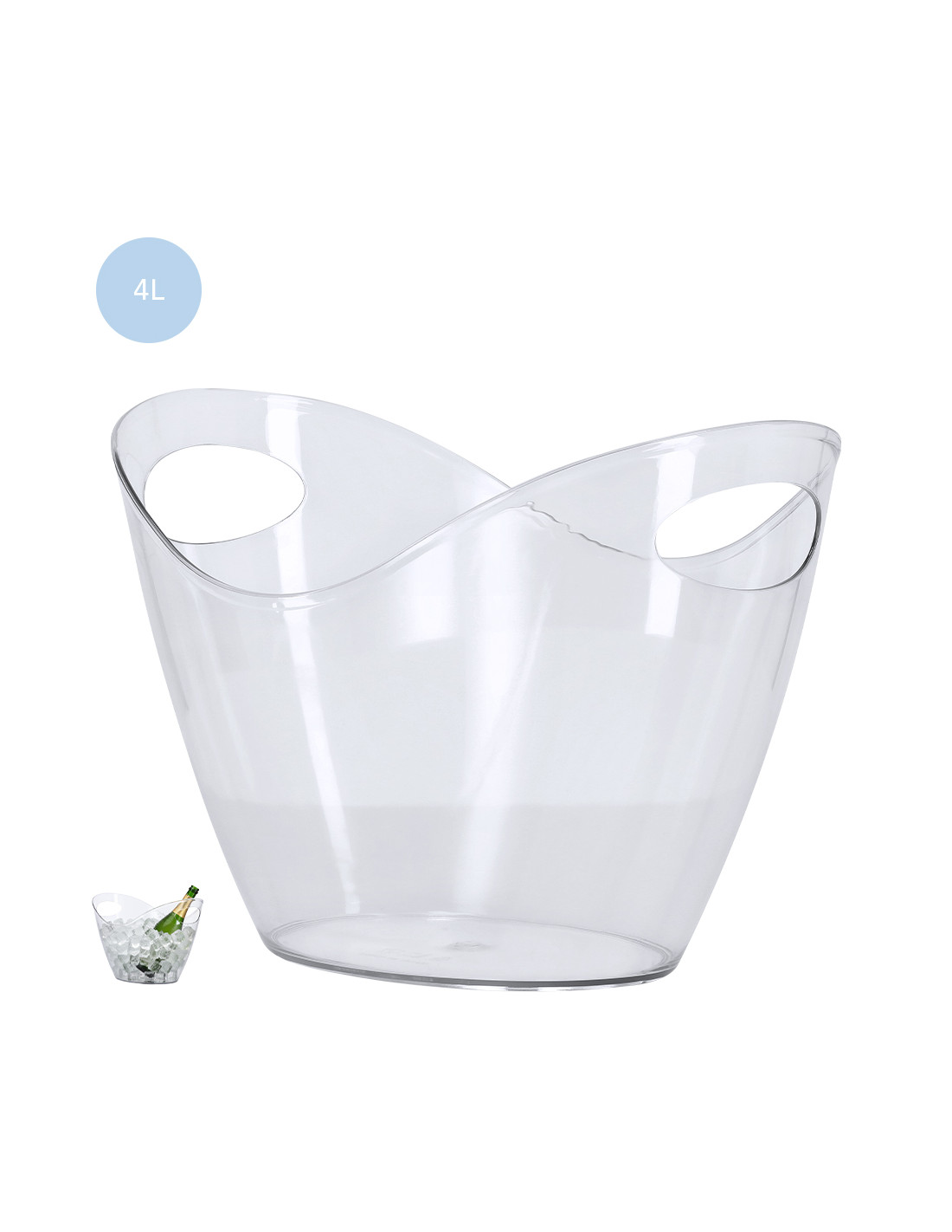 Elegante cubitera transparente de 4 l de capacidad fabricada en resistente PET. Este accesorio combina estilo y funcionalidad, manteniendo frías las bebidas por su gran tamaño.