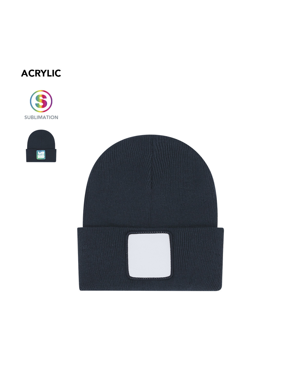 Suave y cálido gorro elástico de punto, fabricado en material acrílico. Incluye cómodo dobladillo con parche en blanco en la parte frontal, diseño especial para sublimación.
