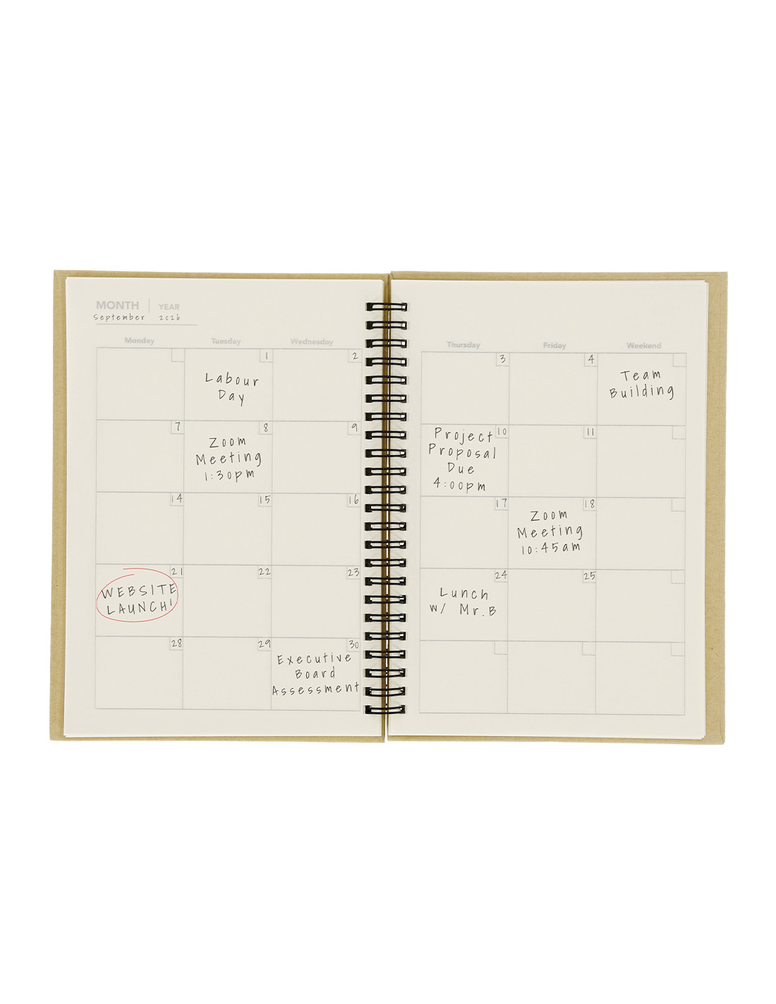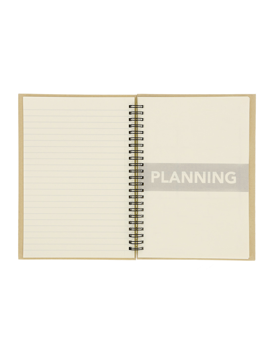 **Composición y materiales:** Libreta con planificador mensual incluido. Con tapas rígidas de carton reciclado. Incluye:
