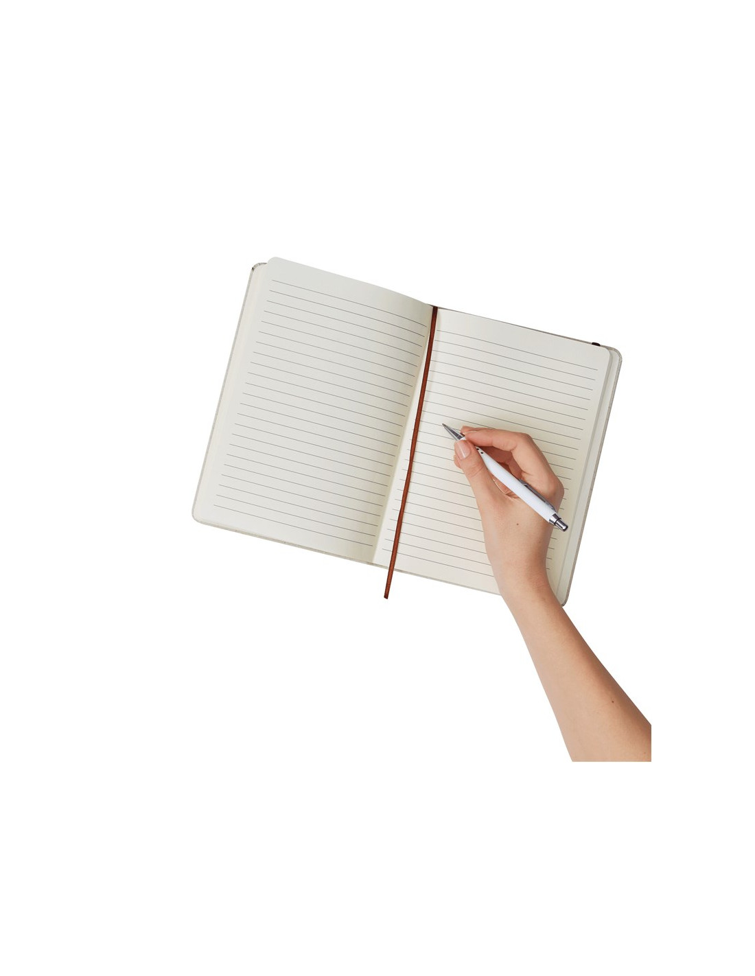Libreta en formato DIN A5, elegante y funcional, con esquinas redondeadas que aportan un toque moderno. Dispone de banda elástica para un cierre seguro y marcador integrado para un uso cómodo. Su superficie en lienzo fino y forrado ofrece un acabado de alta calidad, mientras que sus 80 páginas interiores de 70 g/m² permiten escribir con facilidad. Incluye grabación personalizada a 1 color, ideal como regalo corporativo o artículo promocional. Incluida Grabación a 1 color en la portada.