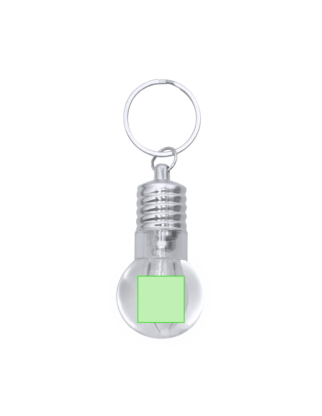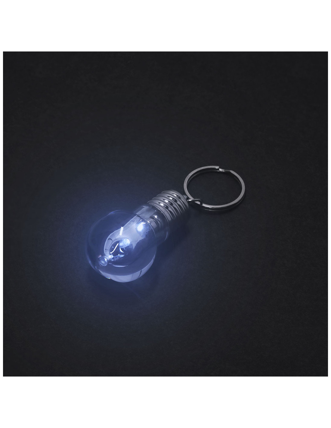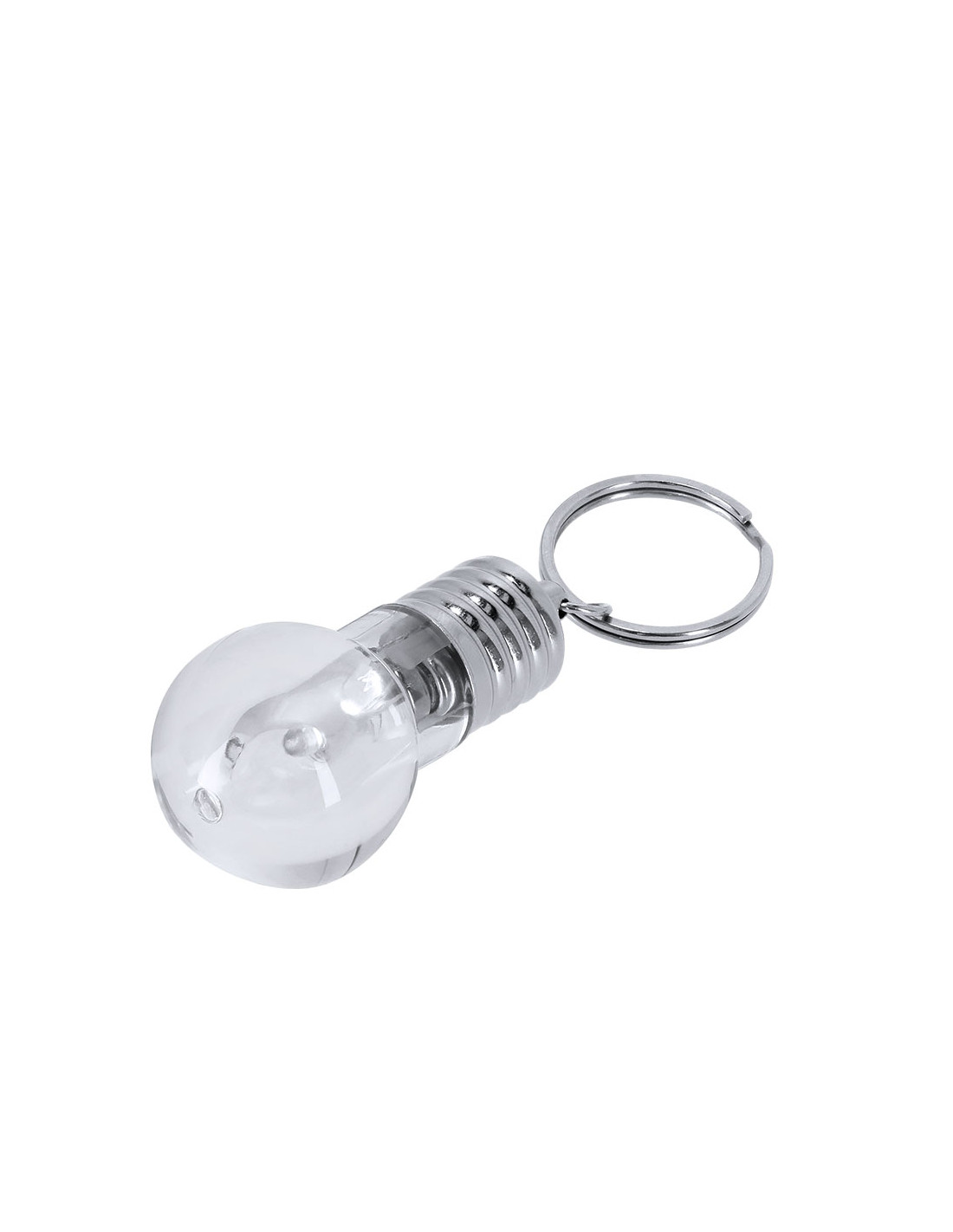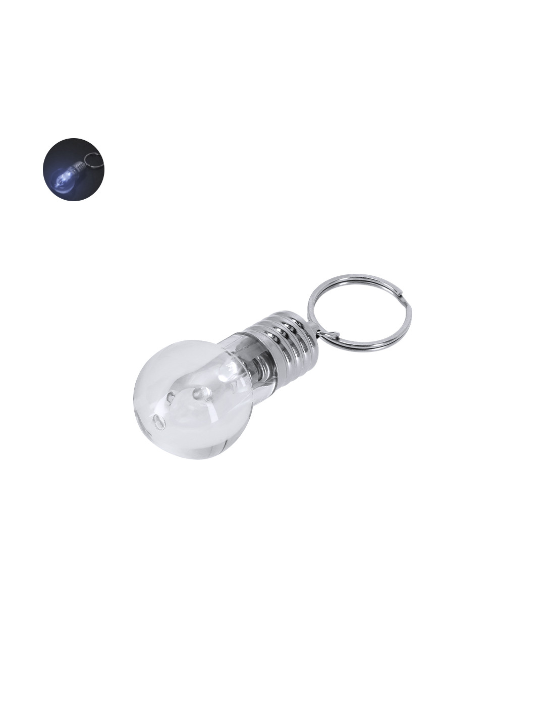 Llavero linterna con original diseño en forma de bombilla. Con 1 LED alimentado con pilas de botón (incluidas) con botón on/off en lateral y elementos decorativos y anilla cromados.