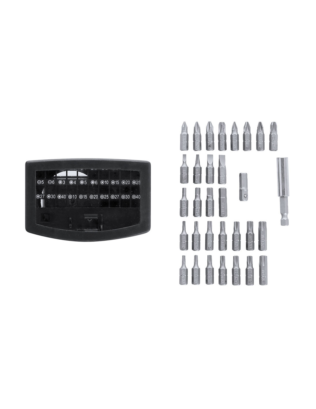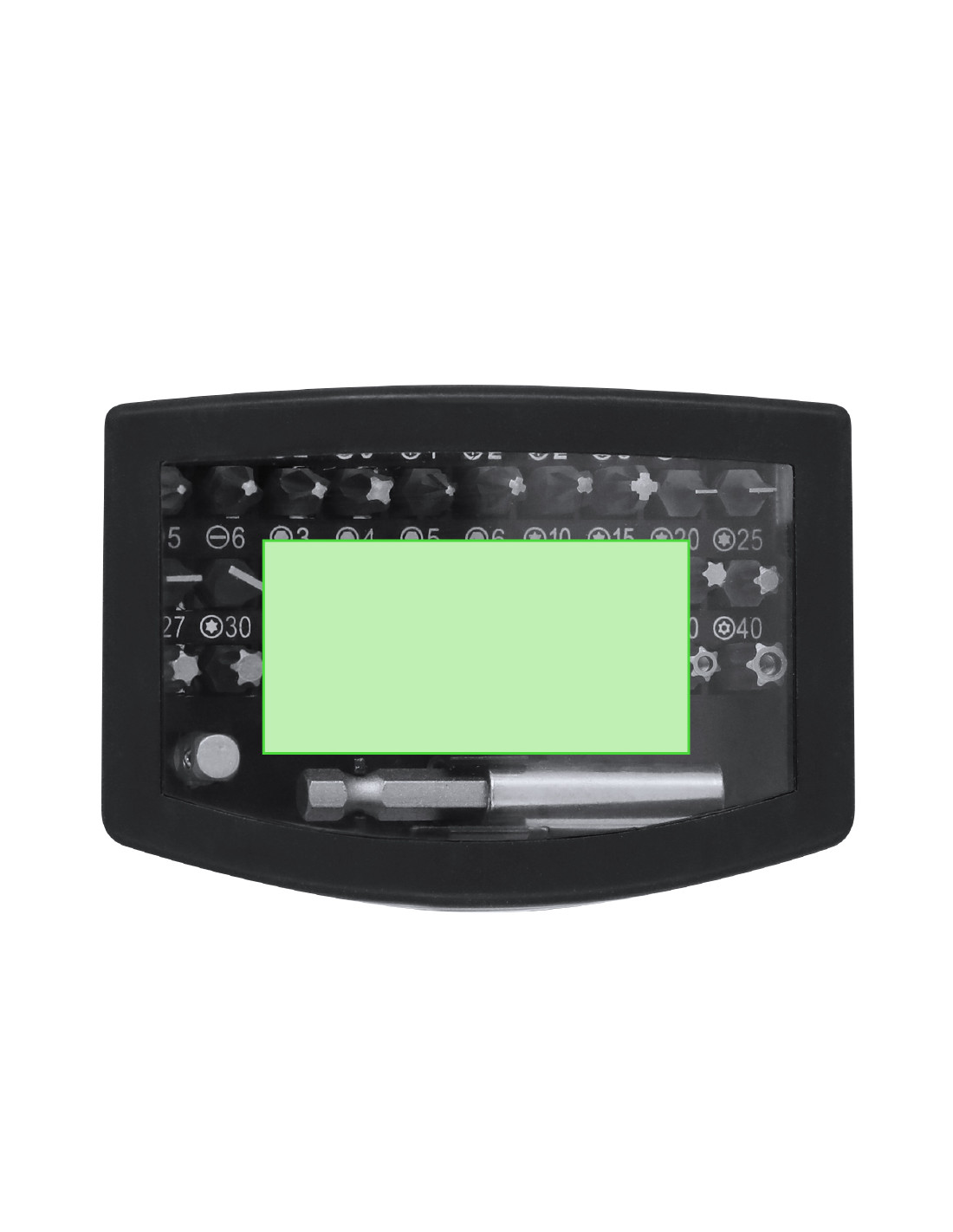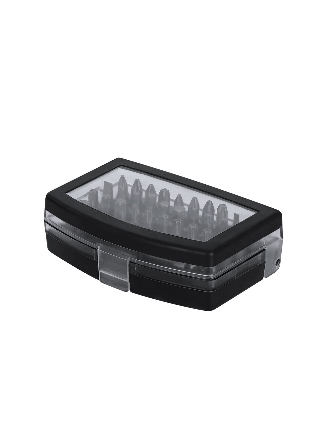 Práctico set de herramientas con estuche fabricado en ABS. Incluye un adaptador de precisión con 32 accesorios magnéticos, compuesto por diversas puntas: philips, estrella, planas, hexagonales y torx.