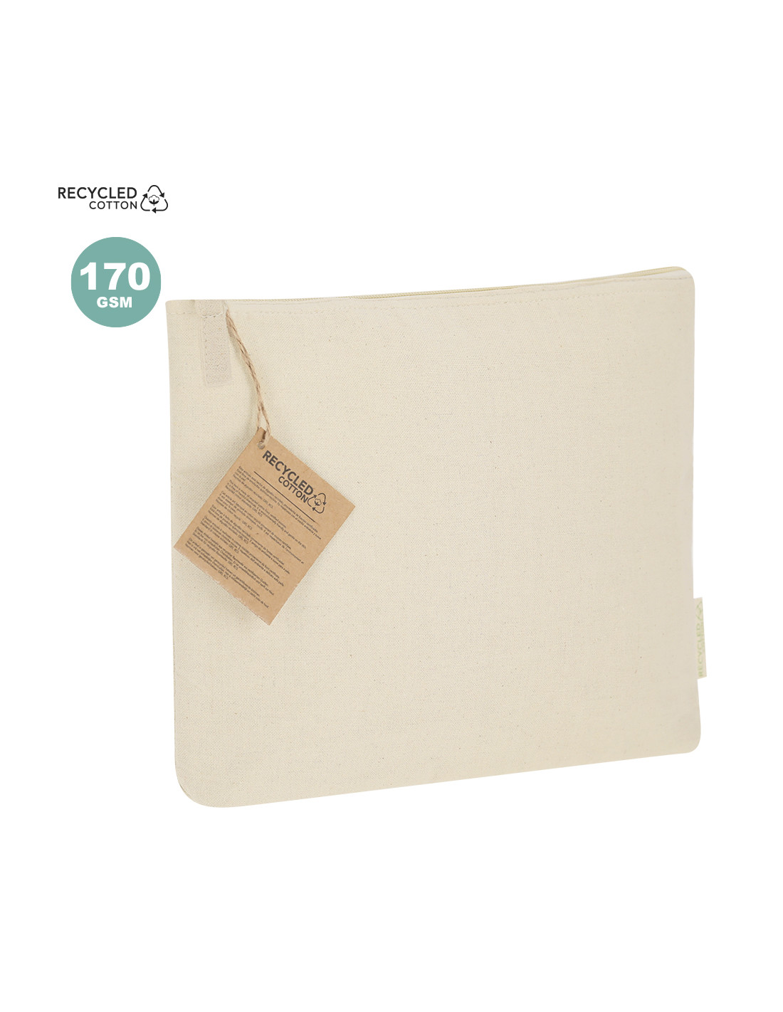 Neceser térmico elaborado principalmente en Algodón Reciclado 170 g/ m2 en elegante tono natural. Compartimento principal con cierre de cremallera, interior con forro isotérmico ideal para conservar tus productos cosméticos, y tirador en tono natural. Incluye etiqueta de Algodón Reciclado.