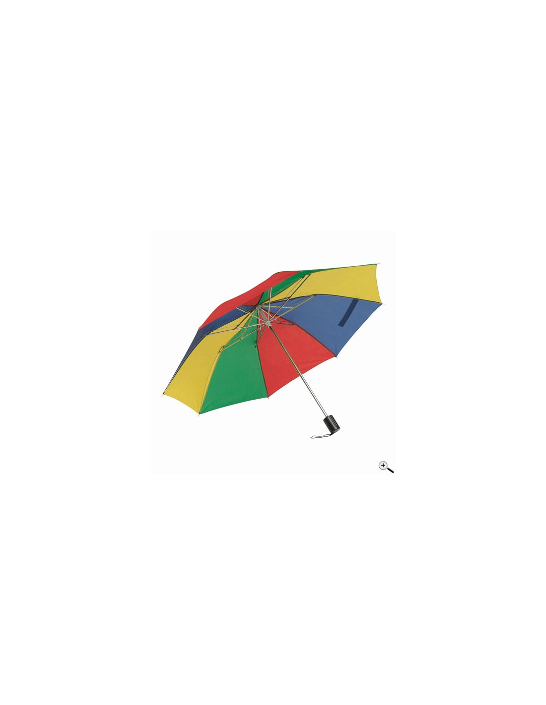 Paraguas plegable con apertura manual, diseñado para un uso cómodo y práctico. Cuenta con caña y varillas de metal que aportan resistencia, mango de plástico ergonómico y revestimiento de poliéster de alta durabilidad. Incorpora cierre mediante tira de Velcro para un fácil almacenamiento y transporte. Incluye grabación personalizada a 1 color en 1 segmento, perfecto como artículo promocional para empresas y eventos.