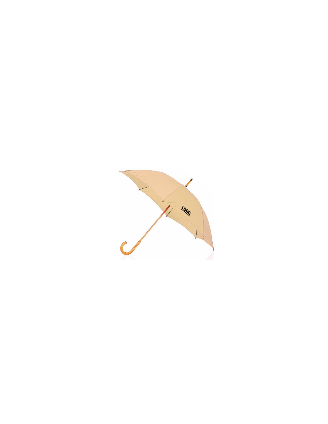 Paraguas de 8 paneles confeccionado en poliéster. De 105cm de diámetro, con apertura manual, varillas metálicas en color negro y cierre de velcro. Palo y mango fabricados en suave madera de color natural, con tela en variada gama de vivos colores.