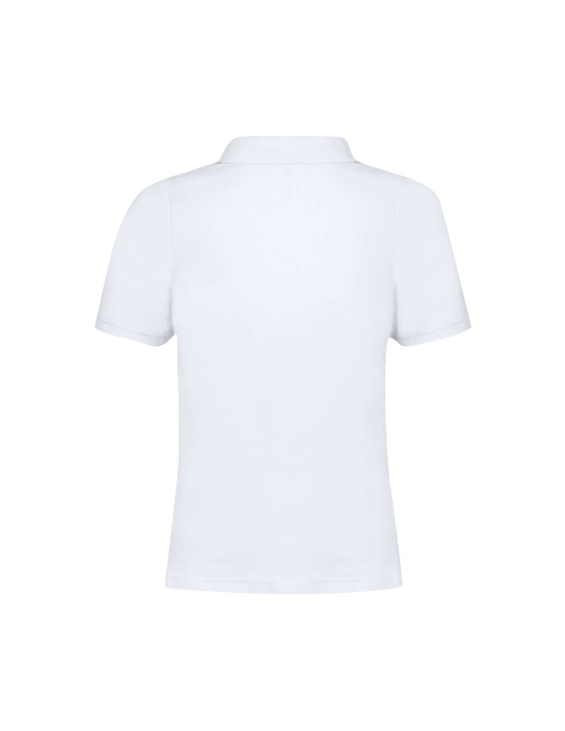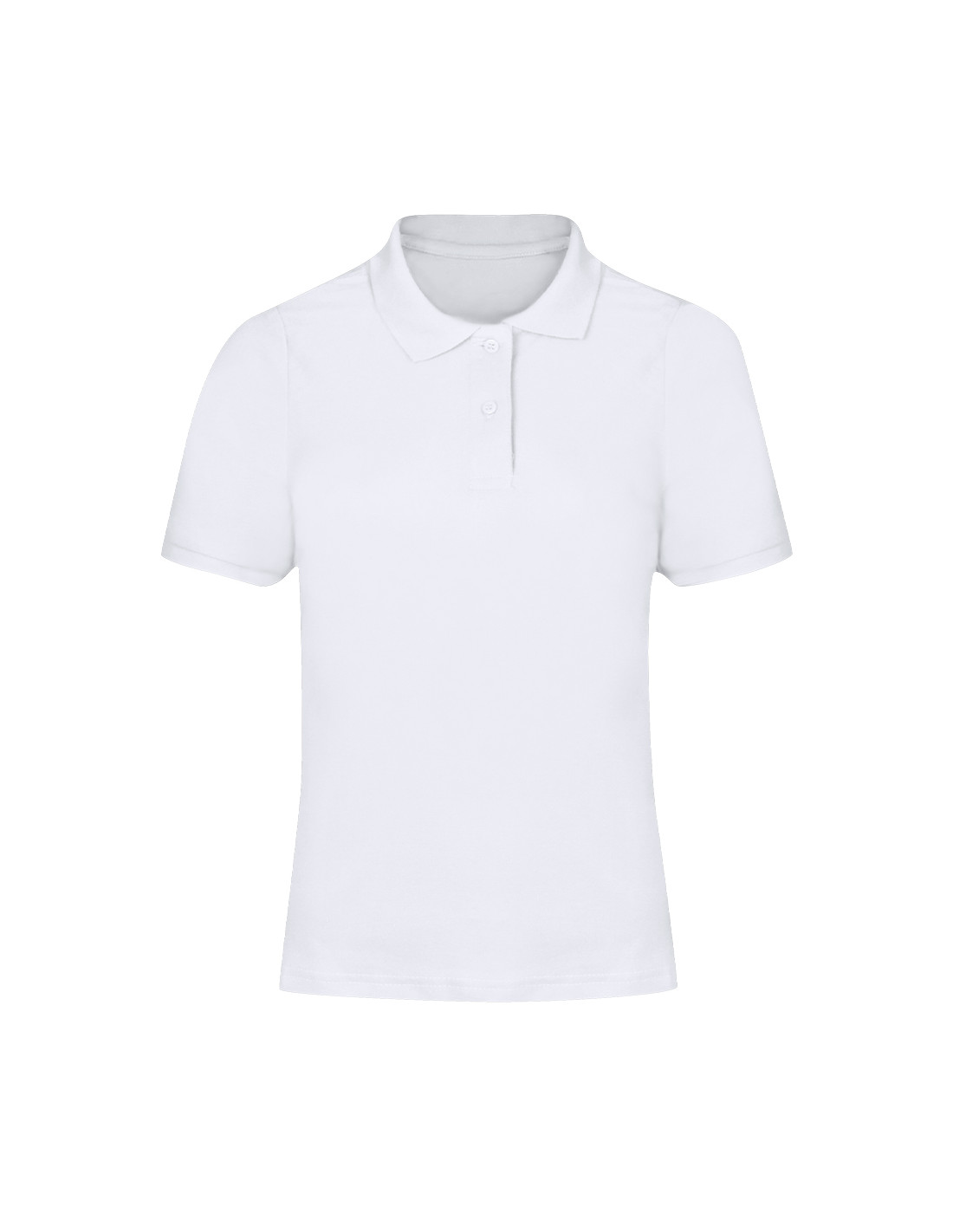 Polo de manga corta, fit femenino, de 180 g/m2. Confeccionado en 100% algodón piqué. Tapeta con dos botones a tono con acabado mate. Con cubrecosturas reforzado en el interior del cuello. Ribete acanalado en mangas y cuello. Costuras laterales con aperturas en la parte del bajo.