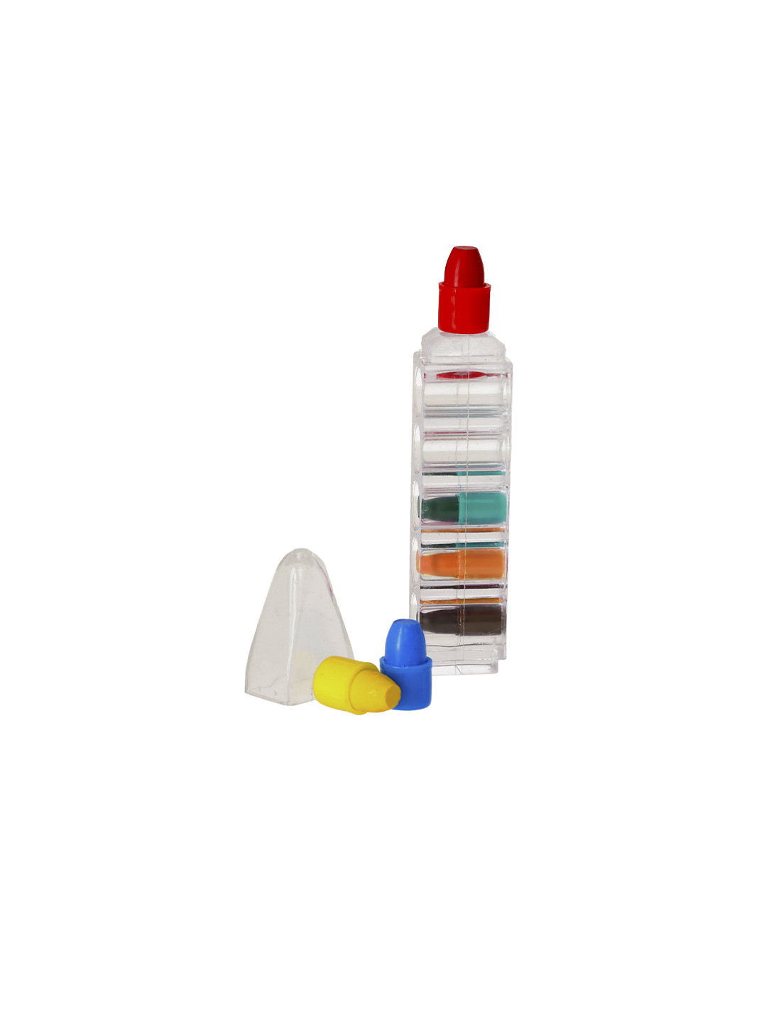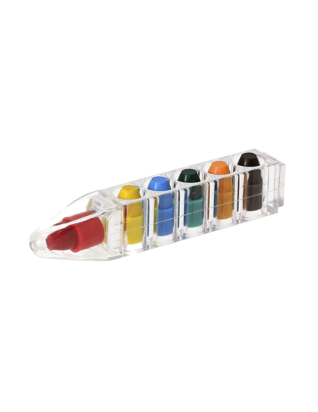 Set de ceras en original estuche de PS translúcido en forma de cera. Compuesto por seis puntas de cera de colores intercambiables (amarillo, azul, rojo, verde, naranja y marrón). Dispone de un tapón protector para la punta.Ideal regalo infantil que encantará a todos los niños.