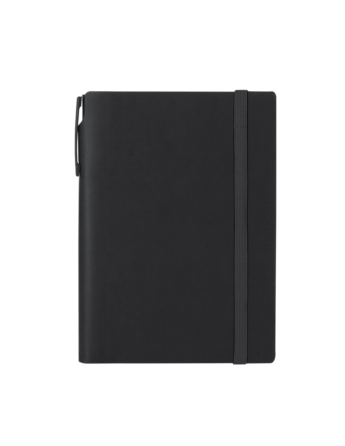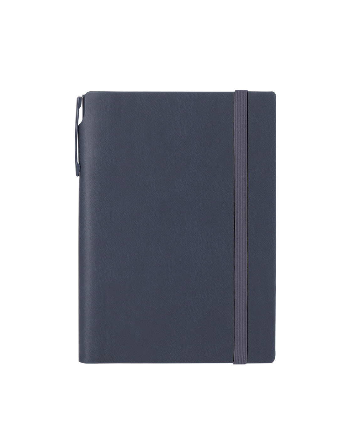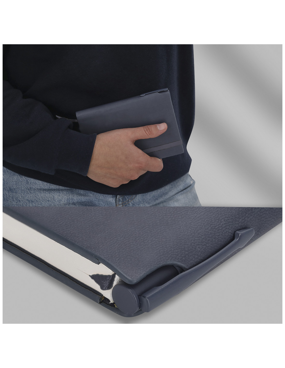 Set de bloc de notas y bolígrafo fabricados en PU reciclado y Aluminio Reciclado. El set incluye: - Bloc de notas fabricado en PU reciclada. Portadas rígidas, incluye 96 páginas de color crema, marcapáginas y cinta elástica de cierre a juego. Con distintivo logo PU reciclado. - Bolígrafo fabricado en Aluminio reciclado, con cuerpo en color sólido en acabado caucho. Dispone de clip, mecanismo pulsador y tinta azul. Incluye distintivo logo en Aluminio reciclado.El bloc dispone de un espacio para guardar el bolígrafo pudiendo llevarlo todo en un mismo sitio.