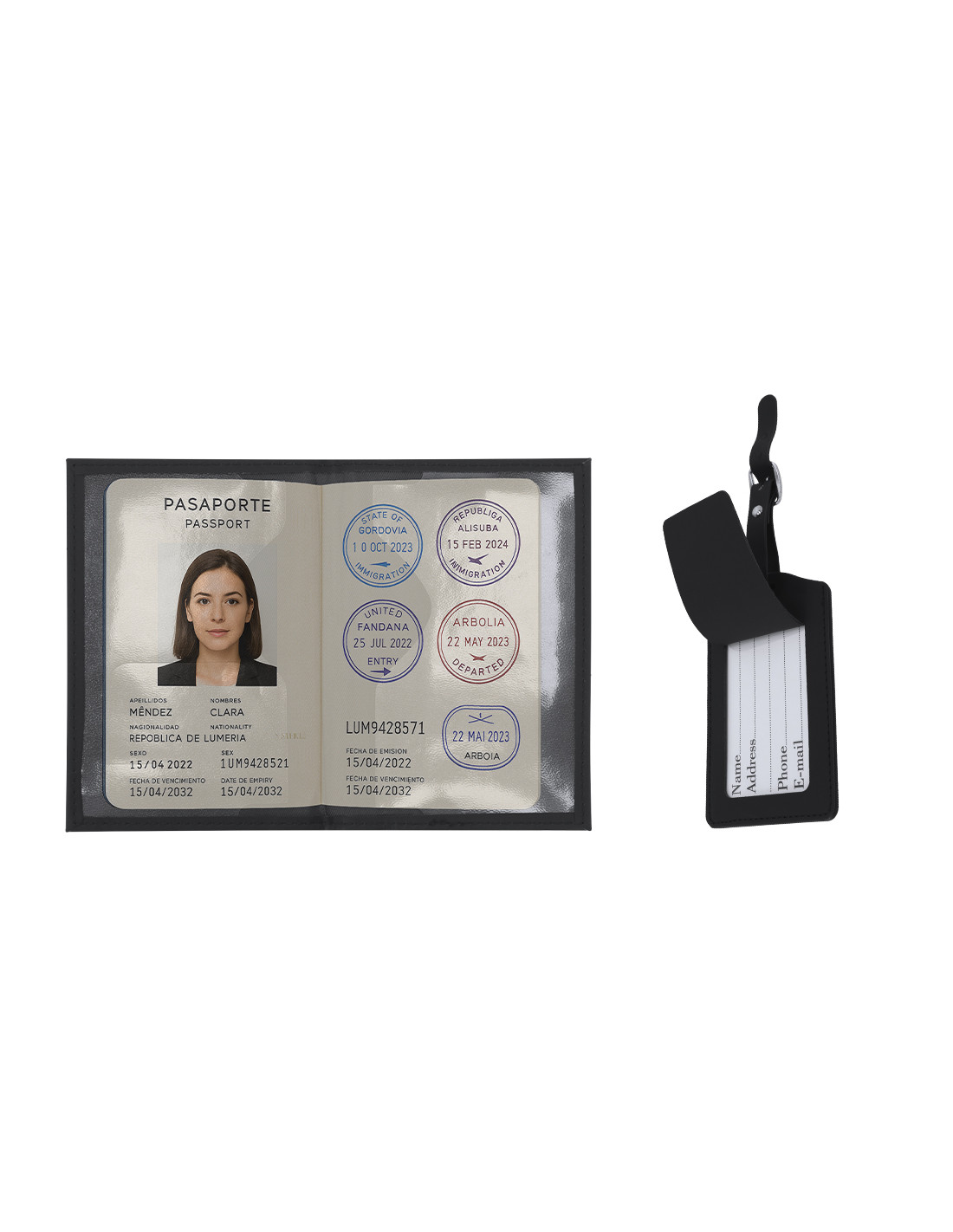 Set Viaje Sislak de RegaloPlus es una excelente opción para reforzar la identidad corporativa en campañas y promociones. **Composición y materiales:** Set de viaje compuesto por funda para pasaporte y etiqueta de equipaje, fabricados en suave PU .