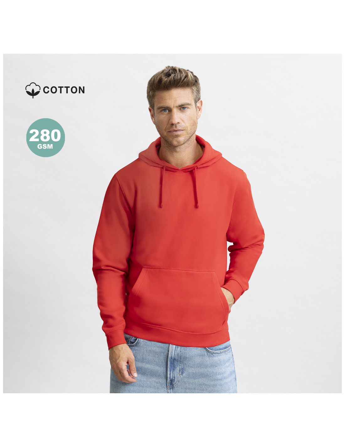 Sudadera Adulto Draco de RegaloPlus es una excelente opción para reforzar la identidad corporativa en campañas y promociones. **Composición y materiales:** Sudadera con capucha forrada a tono de doble tejido. Confeccionada en algodón y poliester en suave felpa perchada de 280 g/m2. Con Bolsillo tipo canguro. Cordón ajustable y ojales metálicos a tono. Cubrecosturas en el cuello. Puños y la cintura en punto canalé 1x1 con elastano para mayor ajuste y confort. **Detalles del producto:** diseño versátil, pensado para el día a día y adaptable a diferentes necesidades promocionales. Permite personalización mediante serigrafía, bordado u otras técnicas. Personalízalo con el logo de tu empresa y conviértelo en un regalo publicitario que destaca tu marca con estilo y profesionalidad.