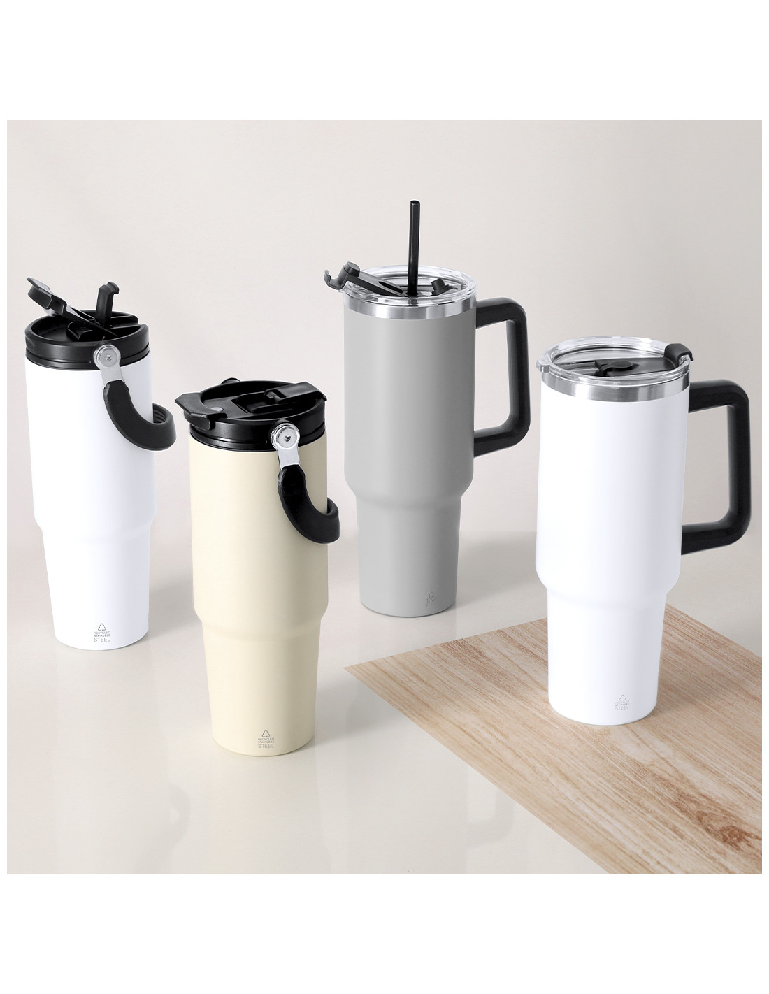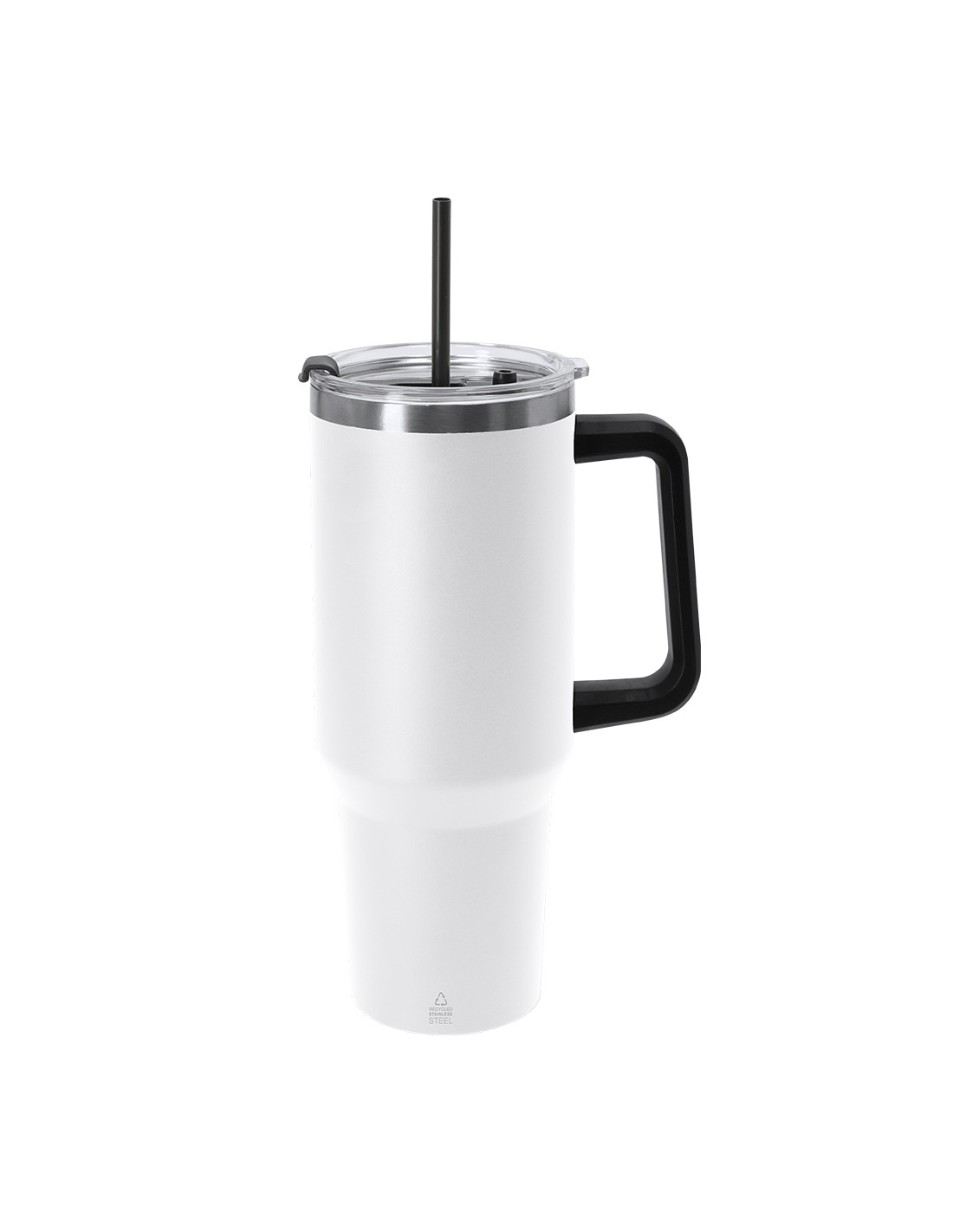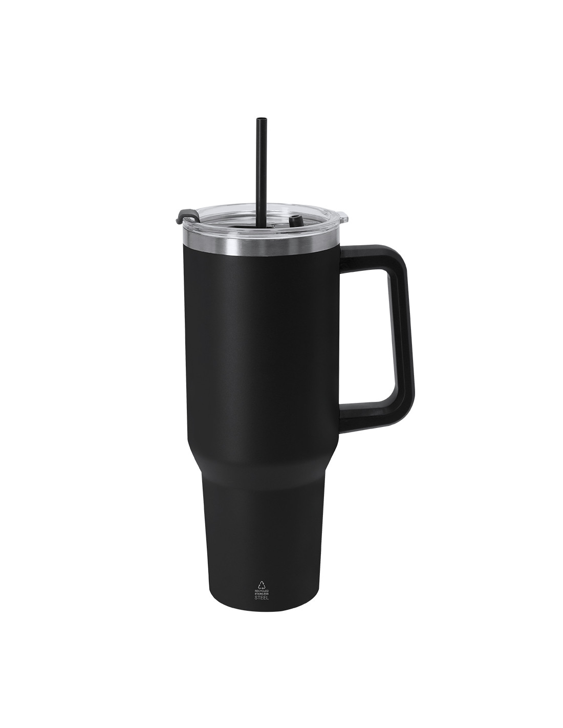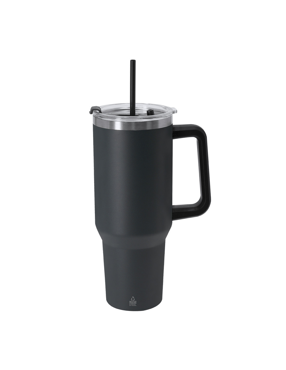 **Composición y materiales:** Jarra térmica de 1,2 L de capacidad. Fabricada en Acero Inoxidable Reciclado. Cuenta con doble sistema de bebida: orificio con cierre hermético y pajita integrada, adaptándose a las preferencias de uso. Incluye asa de transporte ergonómica de PP para mayor comodidad. Libre de BPA. Incluye distintivo acero inoxidable reciclado.