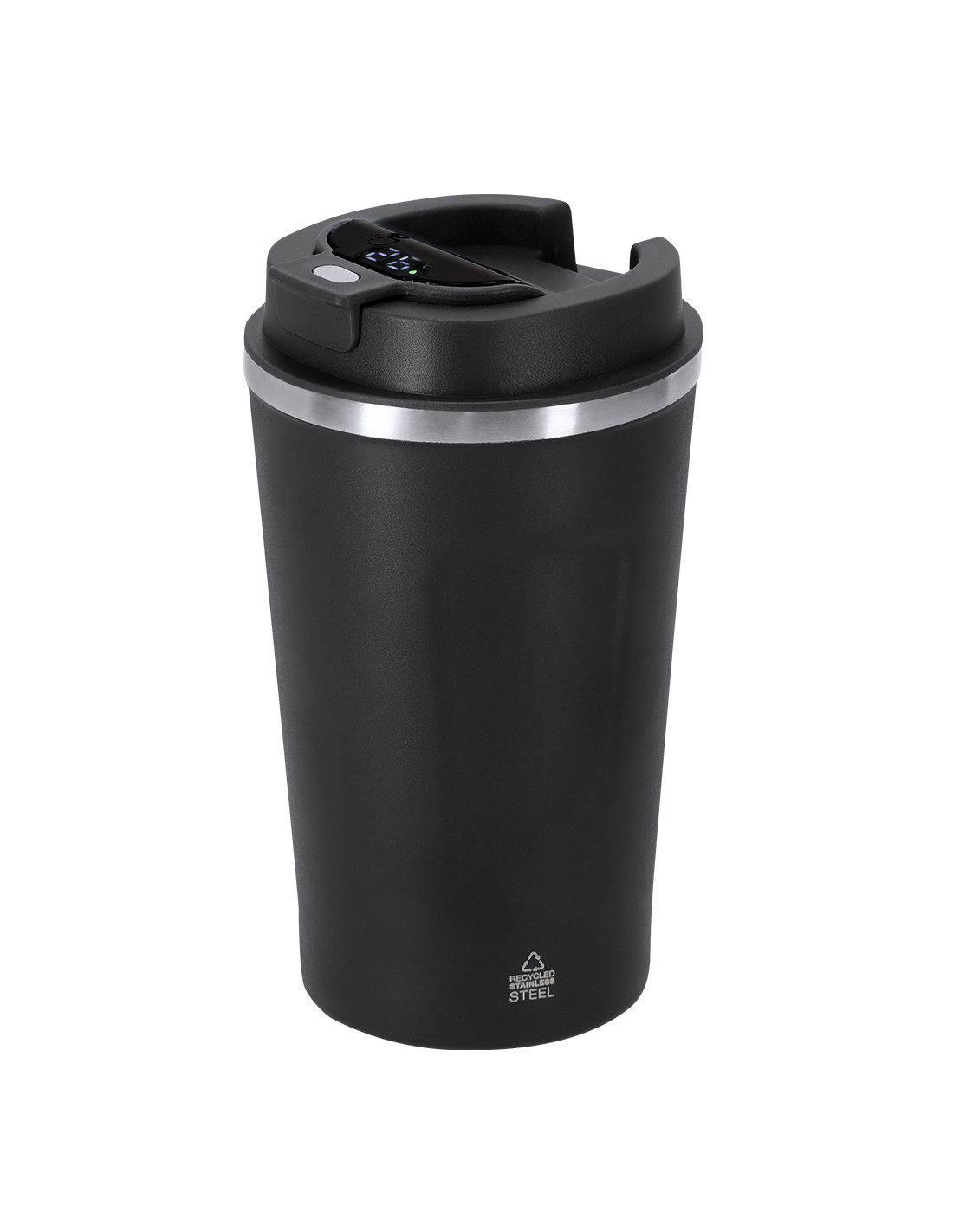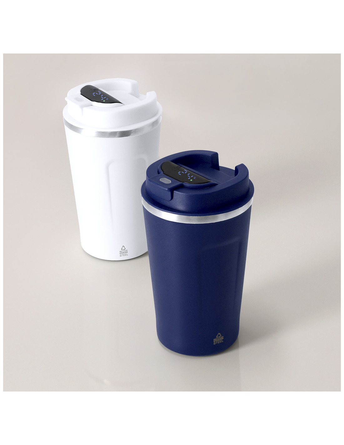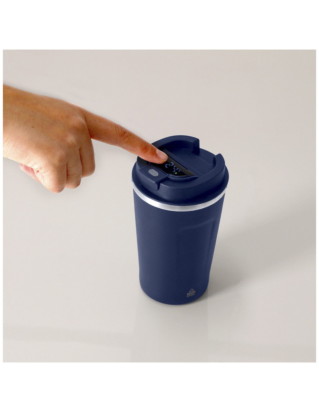 Vaso Térmico Molin de RegaloPlus es una excelente opción para reforzar la identidad corporativa en campañas y promociones. **Composición y materiales:** Vaso térmico con capacidad de 400 ml, fabricado en Acero Inoxidable Reciclado. Incorpora pantalla táctil en la tapa que muestra la temperatura interior con solo un toque. Cuenta con tapadera de seguridad para un cierre hermético. Libre de BPA. Incluye distintivo Acero Inox Recliclado. Alimentación a batería. No apto para lavavajillas. **Detalles del producto:** diseño versátil, pensado para el día a día y adaptable a diferentes necesidades promocionales. Permite personalización mediante serigrafía, bordado u otras técnicas. Personalízalo con el logo de tu empresa y conviértelo en un regalo publicitario que destaca tu marca con estilo y profesionalidad.